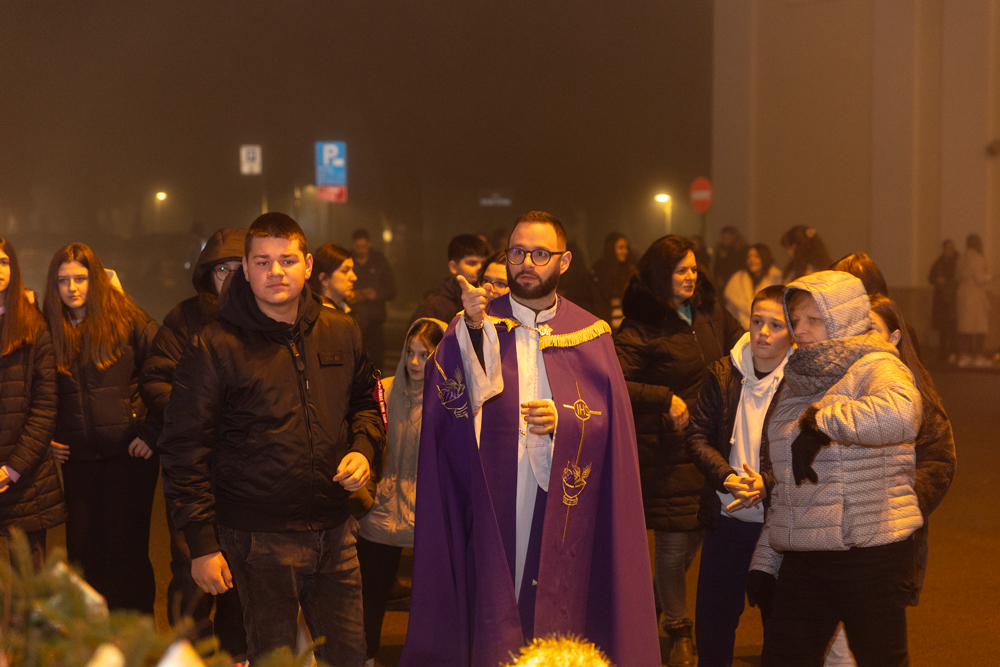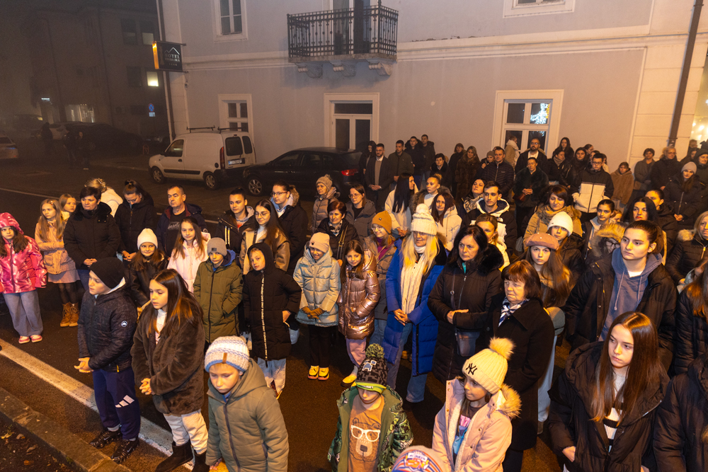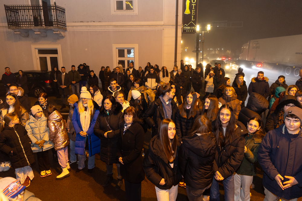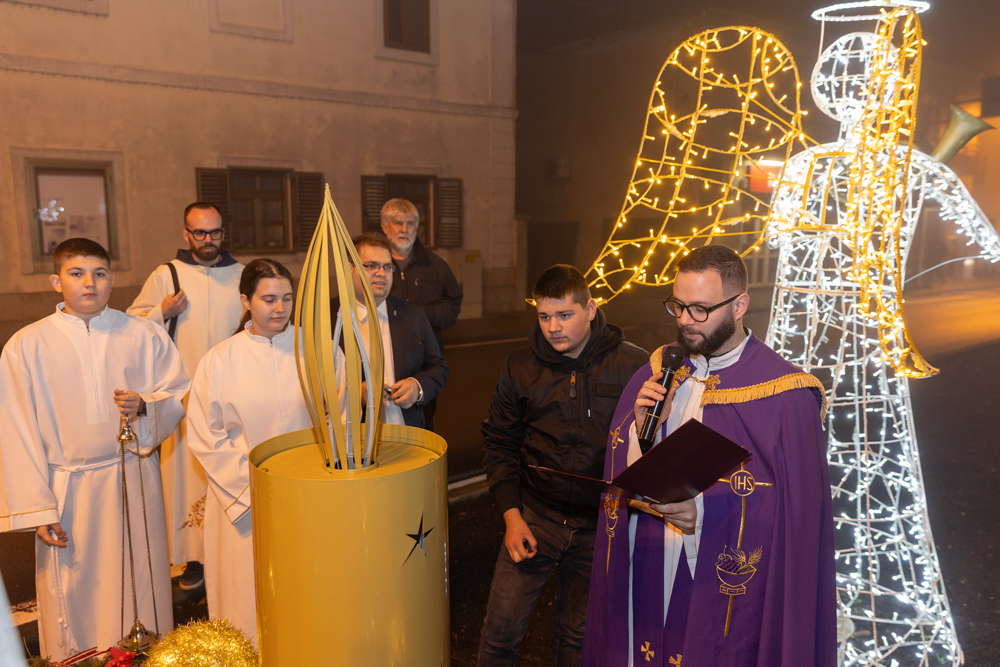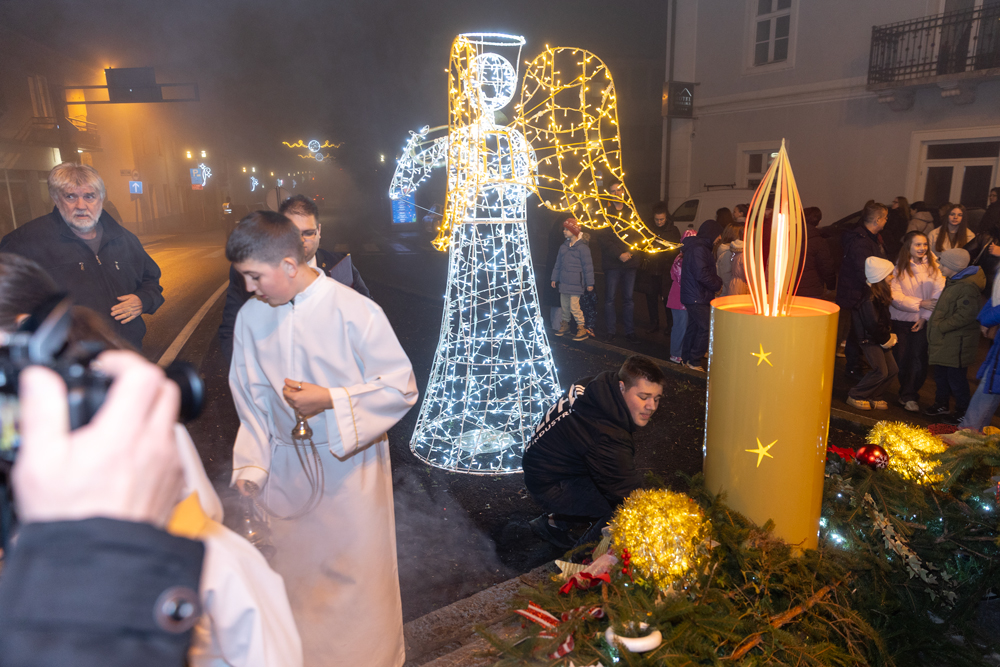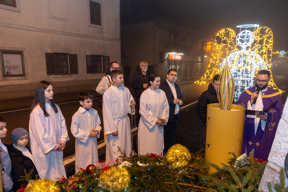 Nakon večernje nedjeljne svete mise, služene u prepunoj Katedrali Navještenja Blažene Djevice Marije u Gospiću, na adventskom vijencu postavljenom u središtu grada, kod kipa vodarice Marte, upaljena je treća adventska svijeća – svijeća radosti. Svijeću je upalio jedan od krizmanika, a molitvu uoči paljenja predvodio je gospićki župnik, otac Marko Maglić, koji je u svom obraćanju vjernicima istaknuo kako je svaki čovjek pozvan biti plamen koji će obasjavati svijet djelima milosrđa, radosti i ljubavi, osobito u vremenu došašća koje poziva na unutarnju obnovu i zajedništvo.