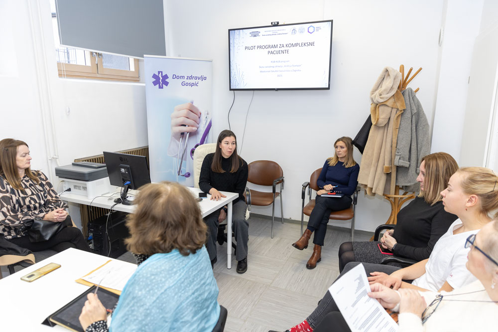 Cilj današnjeg radnog sastanka, na kojem su sudjelovali djelatnici službi Doma zdravlja Gospić te Opće bolnice Gospić, bio je započeti analizu specifičnih problema u odnosu na skrb o kompleksnim pacijentima, kako bismo temeljem toga razvijali ciljane opcije intervencija, u skladu s nacionalnim reformskim smjernicama i globalnim trendovima, a primjerene i provedive u lokalnoj sredini.