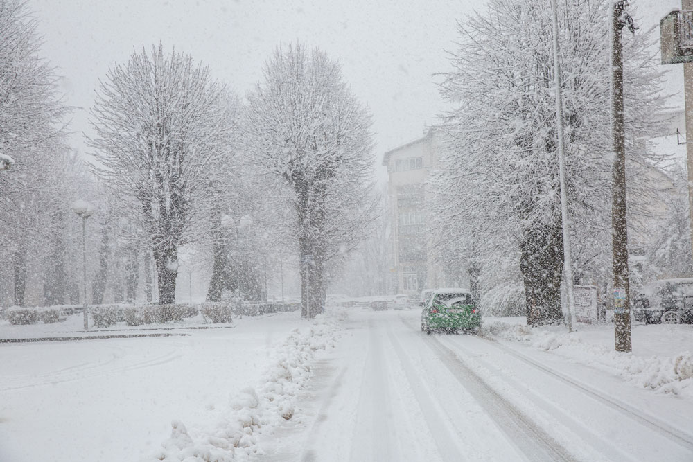 Snijeg uz stvaranje snježnog pokrivača. Visina snijega 20-40 cm