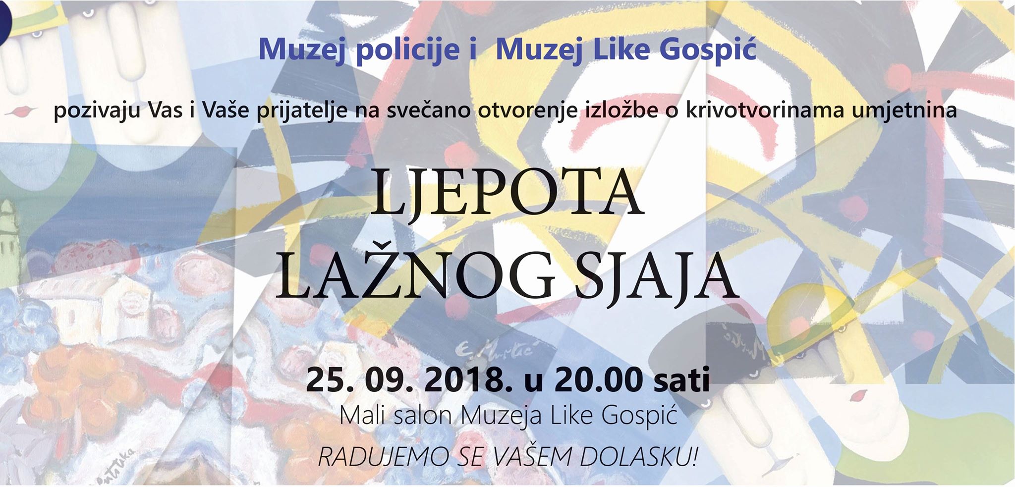 U utorak, 25. rujna u 20 sati, Muzej policije i Muzej Like Gospić u Malom salonu Muzeja Like Gospić svečano otvaraju izložbu postave krivotvorenih umjetnina Muzeja policije pod nazivom „Ljepota lažnog sjaja“.