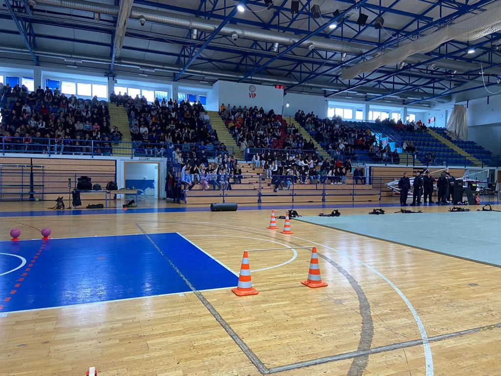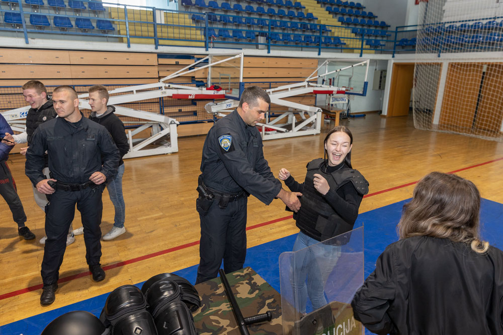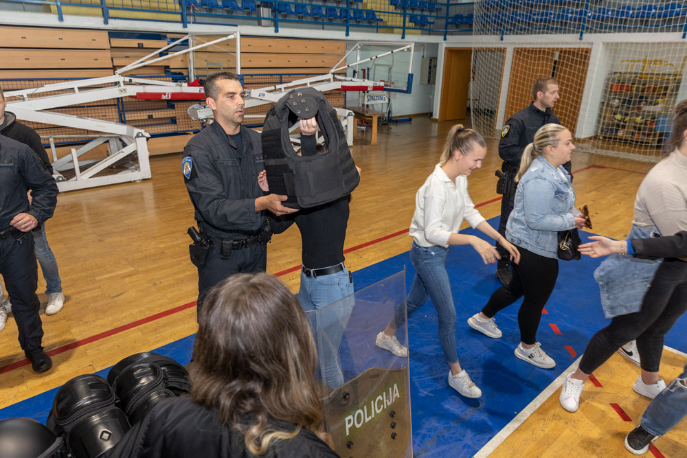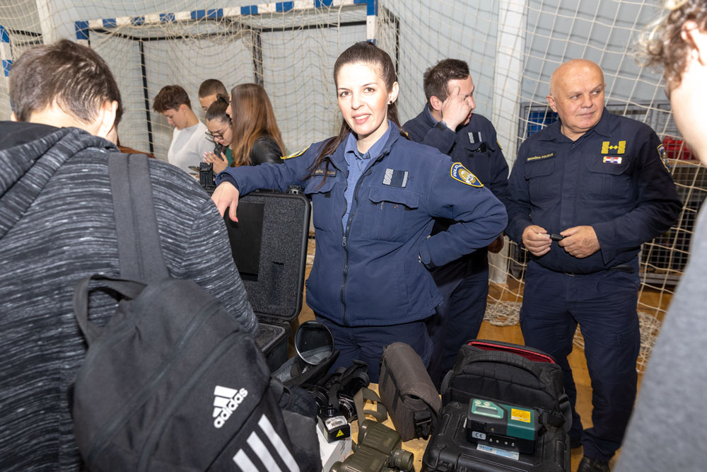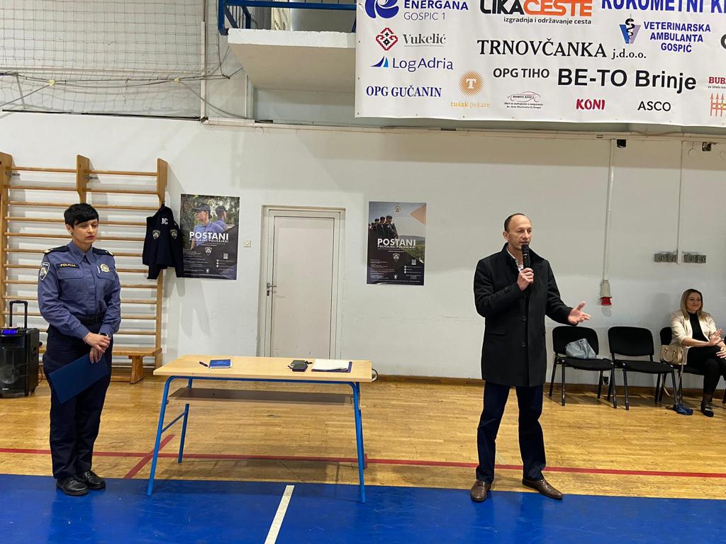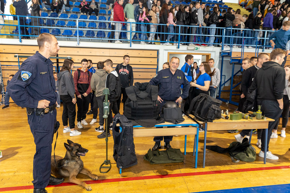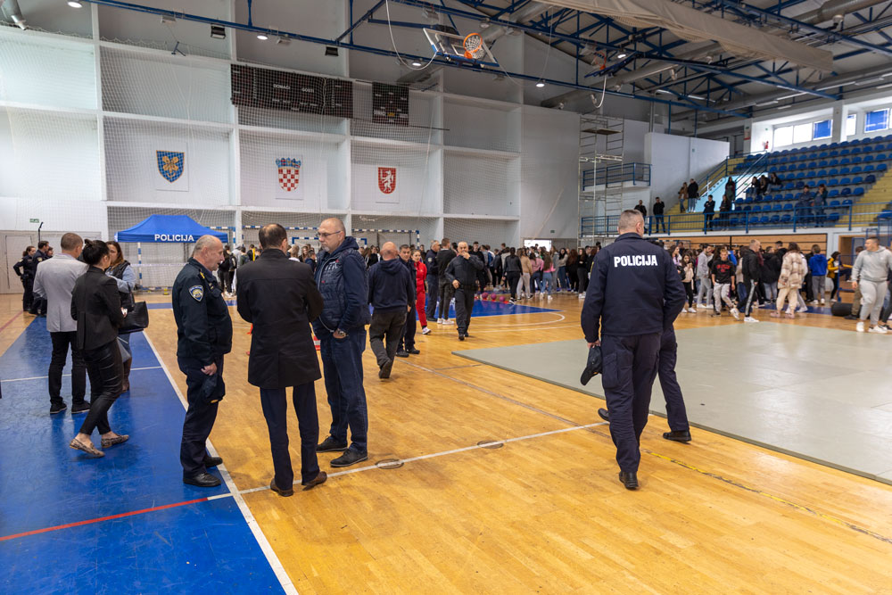 U Gradskoj sportskoj dvorani u Gospiću danas su bili izloženi brojni materijali i oprema kako bi što učinkovitije pokazali što očekuje mlade srednjoškolce ukoliko školovanje odluče nastaviti u III. razredu Policijske akademije MUP-a RH.U tu svrhu su u organizaciji Policijske uprave Ličko-senjske u dvorani bili izloženi brojni materijali i oprema kako bi što učinkovitije pokazali što očekuje mlade srednjoškolce ukoliko školovanje odluče nastaviti u III. razredu Policijske akademije MUP-a RH.