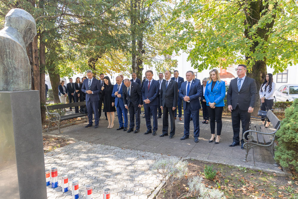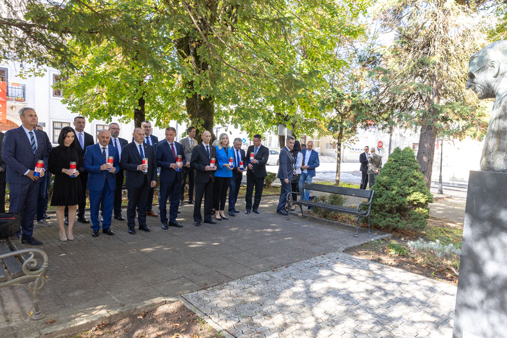 Komemoracija je potom upriličena kod spomen-biste prvog hrvatskog predsjednika dr. Franje Tuđmana. S gostima su bili župan ličko-senjski Ernest Petry i gradonačelnik Grada Gospića sa suradnicima.