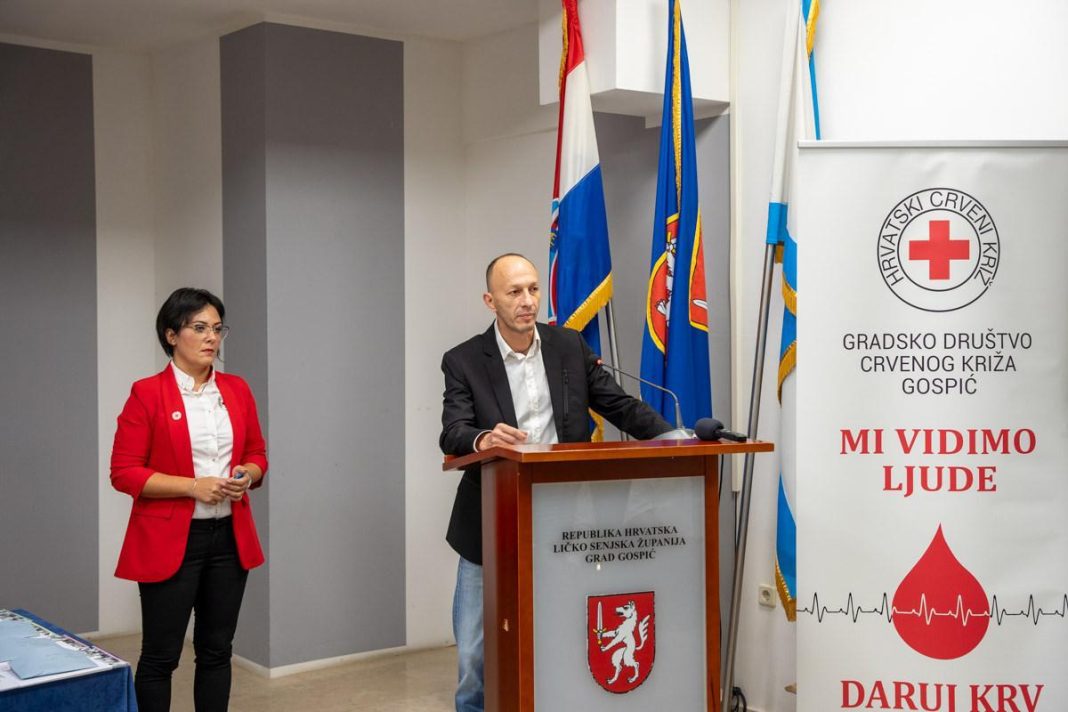 Na početku svečanosti ravnatelj Gradskog društva Crvenog križa Gospić, Vlado Brkljačić, pozdravio je sve prisutne, a posebno dobrovoljne darivatelje krvi, izražavajući im iskrenu zahvalnost. Naglasio je kako je najvažnija činjenica da Crveni križ Gospić iz godine u godinu bilježi rast broja darivatelja, osobito među mlađom populacijom. „Ove godine nadamo se premašiti 1000 doza krvi, dok na razini cijele županije očekujemo preko 2000 doza zahvaljujući upravo vama,“ istaknuo je Brkljačić. Na kraju govora, još jednom je zahvalio svim darivateljima kao i županu i gradonačelniku na podršci i pomoći u provođenju aktivnosti Crvenog križa.