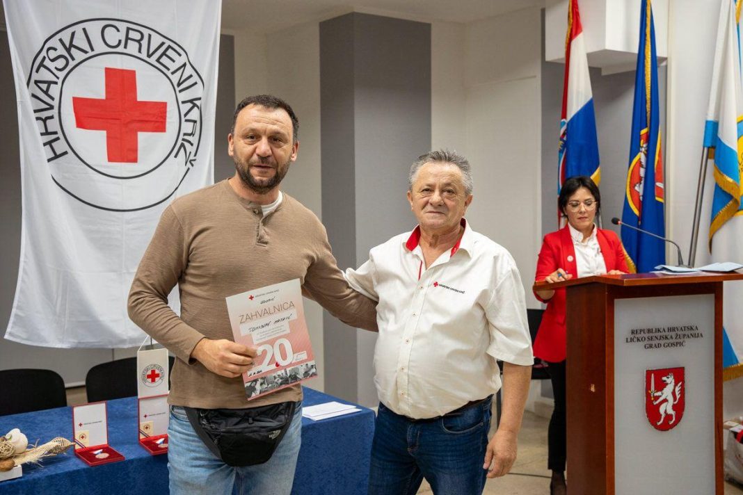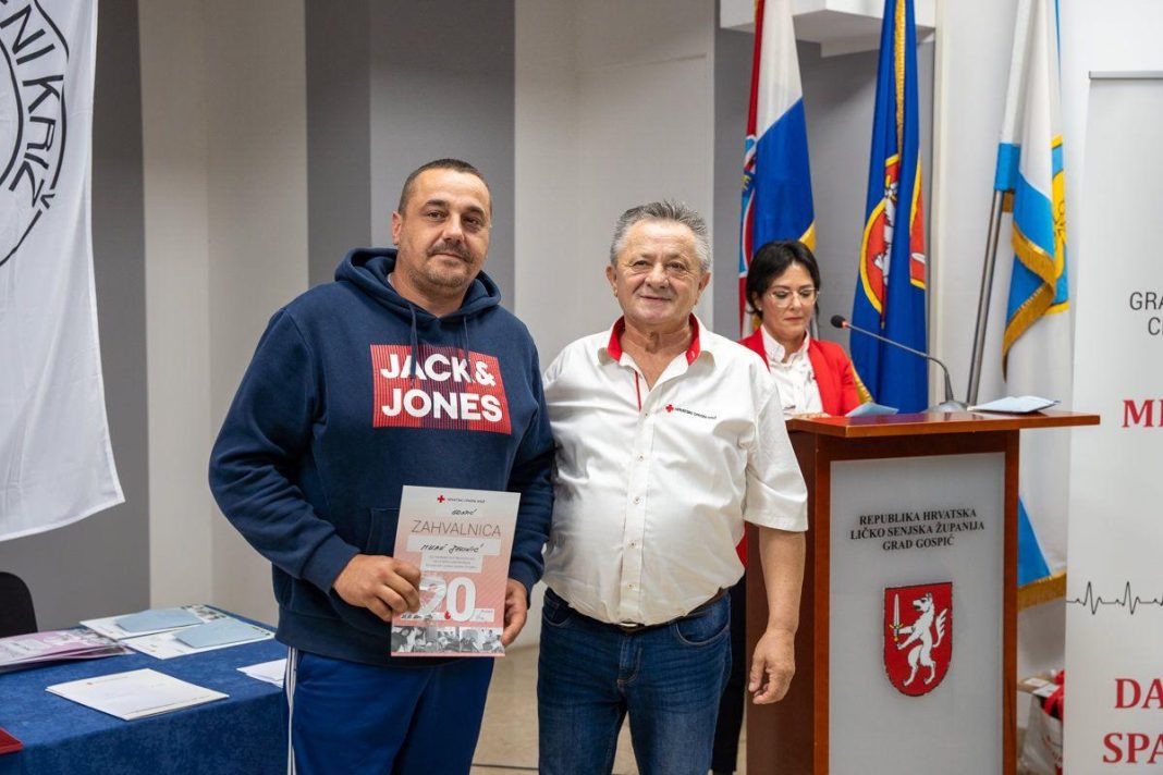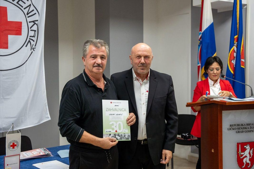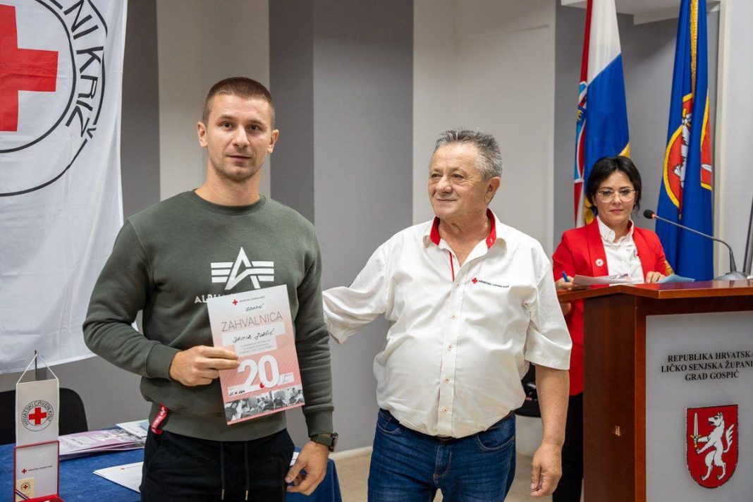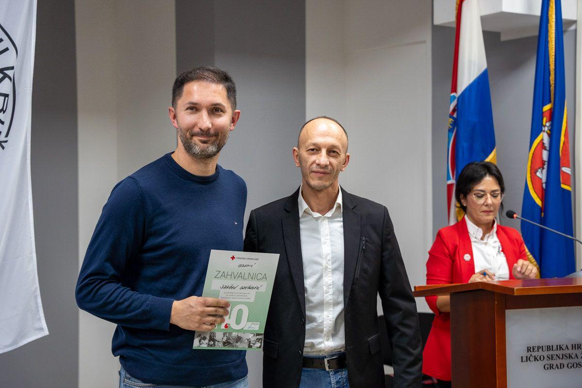 Nakon uvodnih govora uslijedila je dodjela priznanja zaslužnim darivateljima. Priznanja za 10 i 20 darivanja uručio je potpredsjednik Gradskog društva Crvenog križa Gospić, Željko Mataija, za 30 darivanja ravnatelj GDCK-a Vlado Brkljačić, za 40 darivanja župan Ličko-senjske županije Ernest Petry i gradonačelnik Gospića Darko Milinović, dok je priznanja za čak 50 darivanja svečano uručila predsjednica GDCK-a Ankica Dasović.