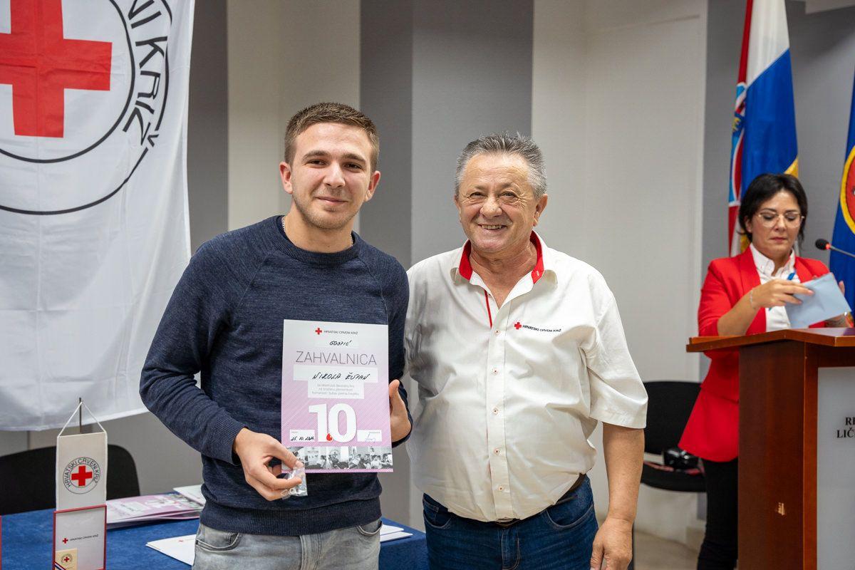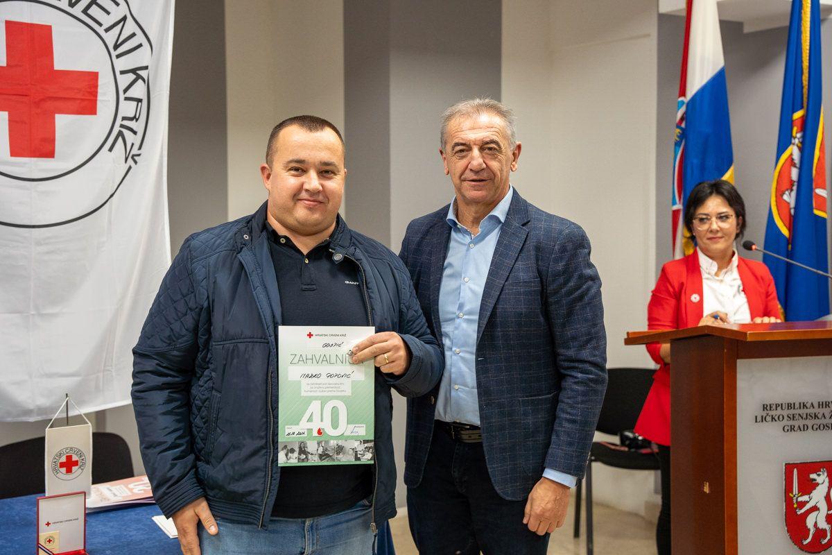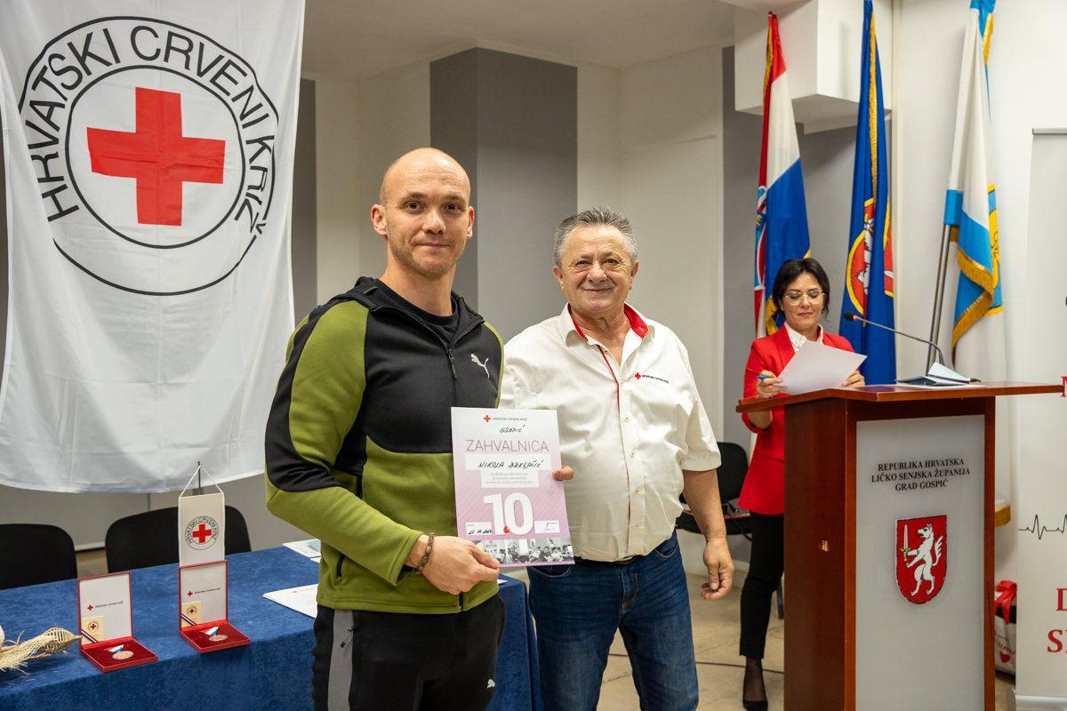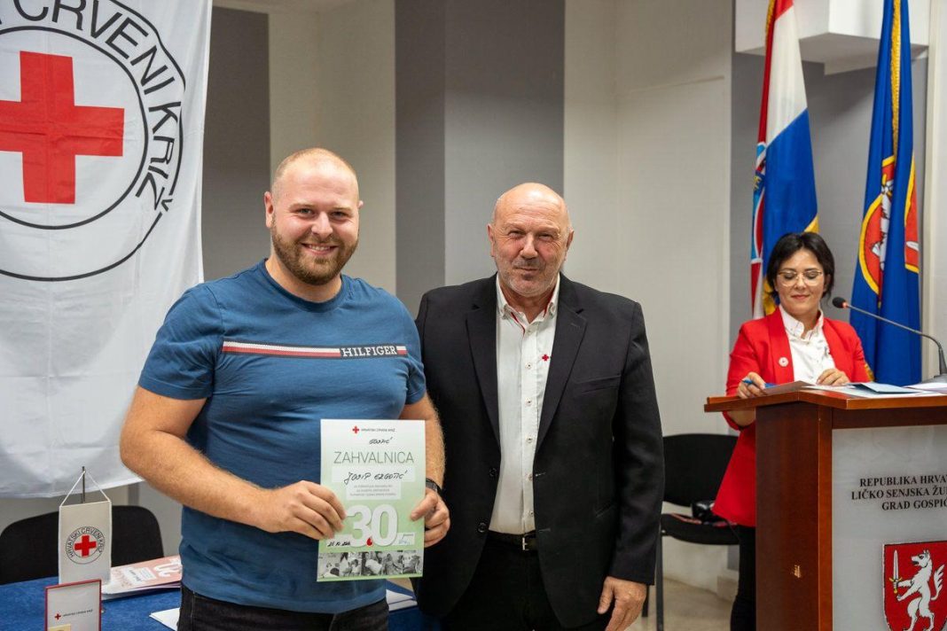 Nakon uvodnih govora uslijedila je dodjela priznanja zaslužnim darivateljima. Priznanja za 10 i 20 darivanja uručio je potpredsjednik Gradskog društva Crvenog križa Gospić, Željko Mataija, za 30 darivanja ravnatelj GDCK-a Vlado Brkljačić, za 40 darivanja župan Ličko-senjske županije Ernest Petry i gradonačelnik Gospića Darko Milinović, dok je priznanja za čak 50 darivanja svečano uručila predsjednica GDCK-a Ankica Dasović.