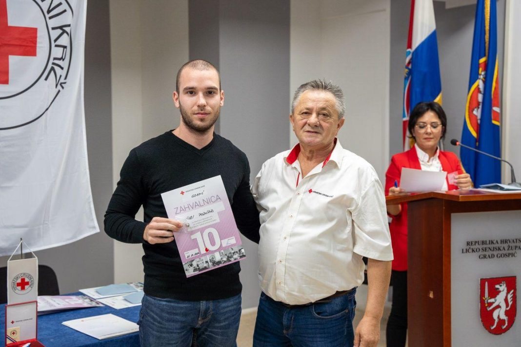 Gospić, večeras je u Kulturno-informativnom centru (KIC) Gospić održana svečana dodjela priznanja za dobrovoljno darivanje krvi u organizaciji Gradskog društva Crvenog križa Gospić. Svečanost su predvodili domaćini i predstavnici Crvenog križa Gospić – predsjednica, Ankica Dasović, ravnatelj Vlado Brkljačić i potpredsjednik Željko Mataija, dok su svojim dolaskom događaj uveličali i župan Ličko-senjske županije Ernest Petry, gradonačelnik Grada Gospića Darko Milinović i zamjenik gradonačelnika Ivica Kovačević.