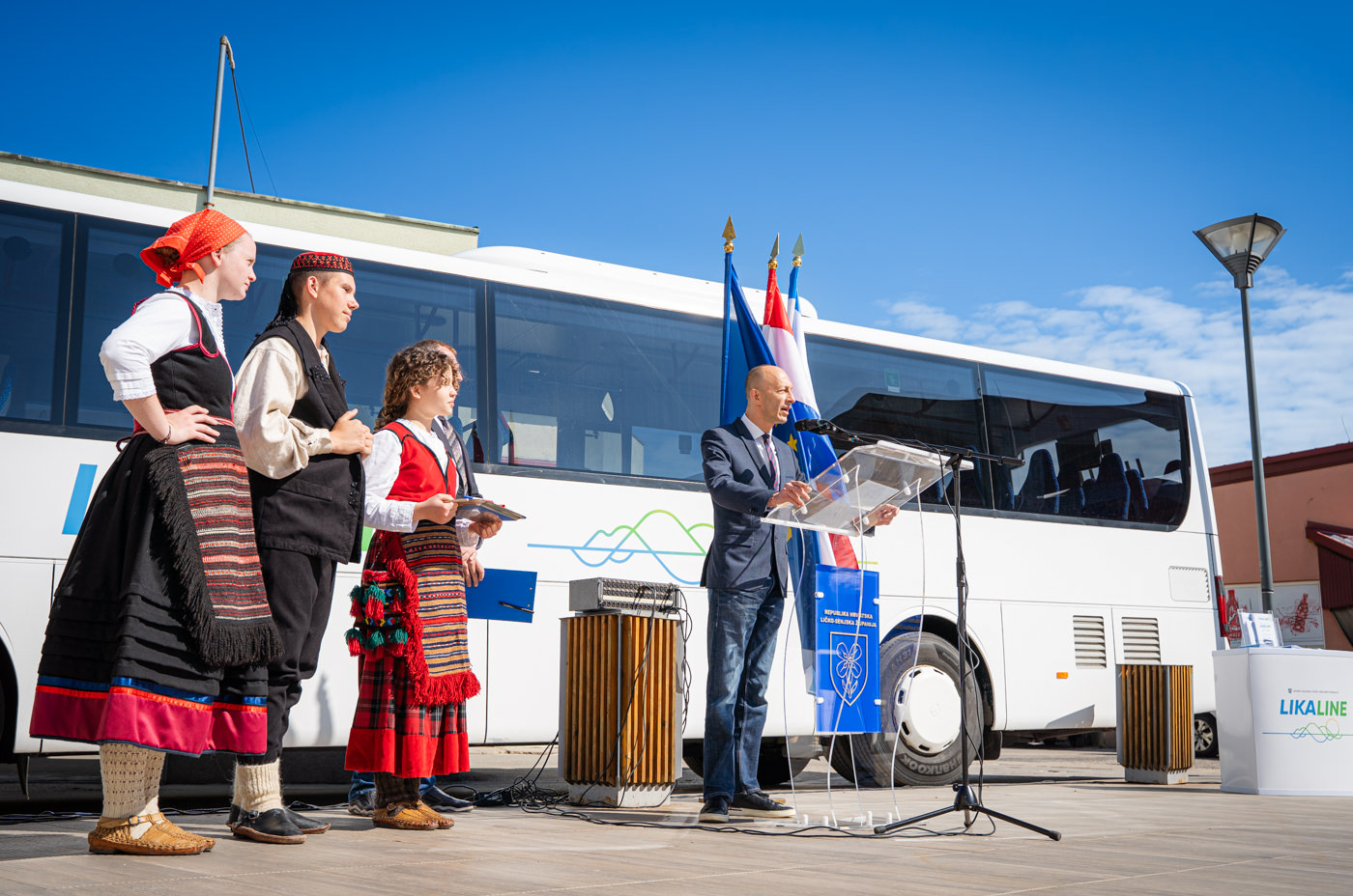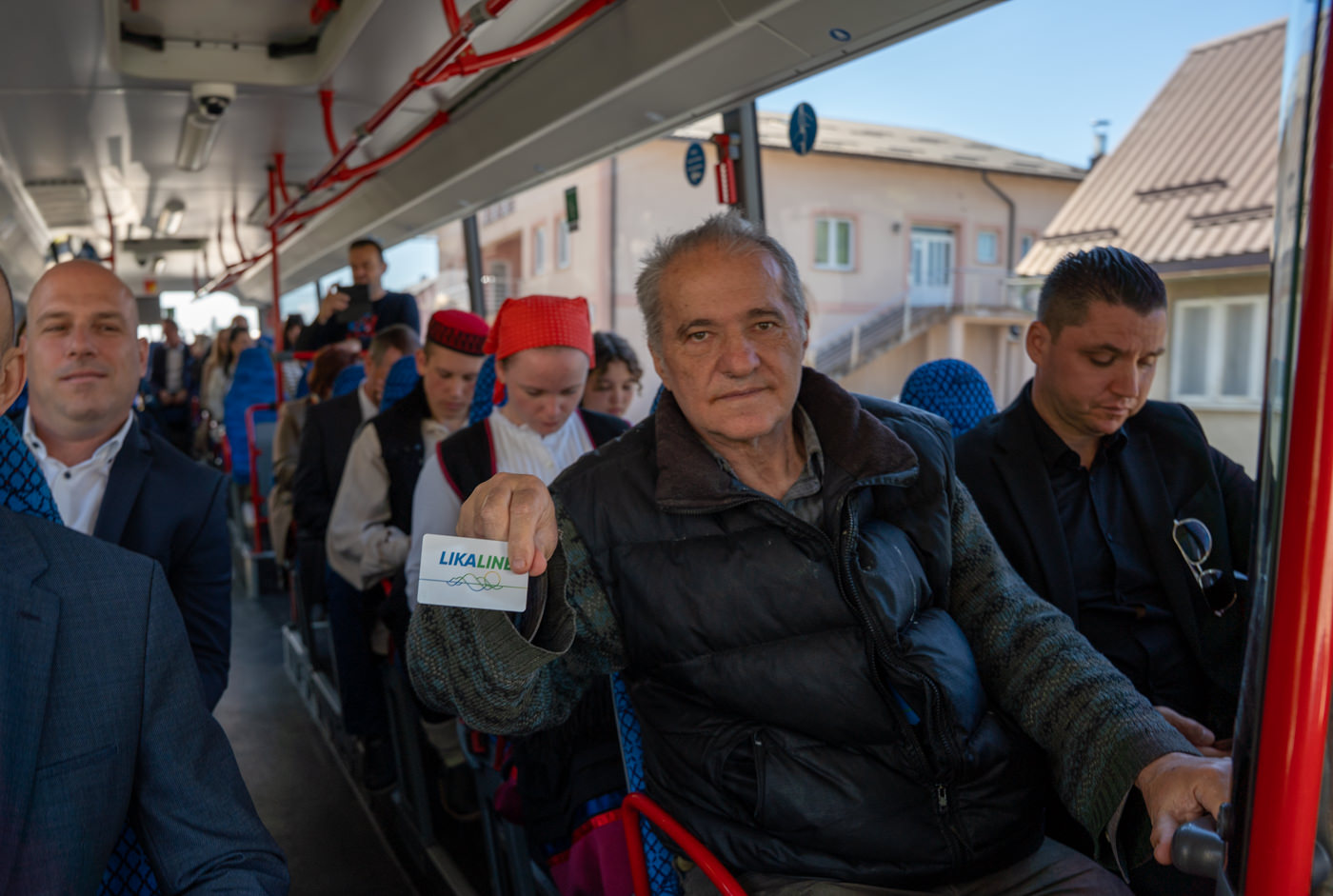 Program se potom nastavio na Autobusnom kolodvoru u Gospiću, gdje je održana svečanost predstavljanja projekta “LIKA LINE”, kojom prigodom je i službeno presječena svečana vrpca, nakon čega je uslijedio blagoslov koji je udijelio o. Anto Knežević. U sklopu događaja održana je i simbolična promotivna vožnja na relaciji Gospić – Smiljan – Gospić, u kojoj su sudjelovali djelatnici Županije i predstavnici prijevoznika te građani. Tijekom svečanosti, župan Ernest Petry uručio je besplatne kartice za prijevoz školarcima i nekolicini okupljenih građana, čime je simbolično obilježen početak korištenja nove javne usluge.
