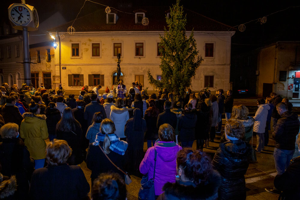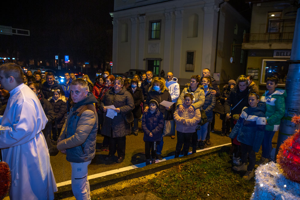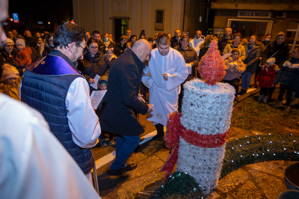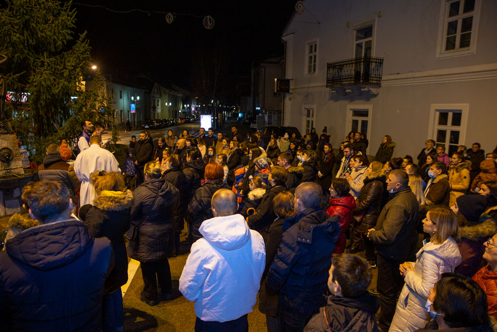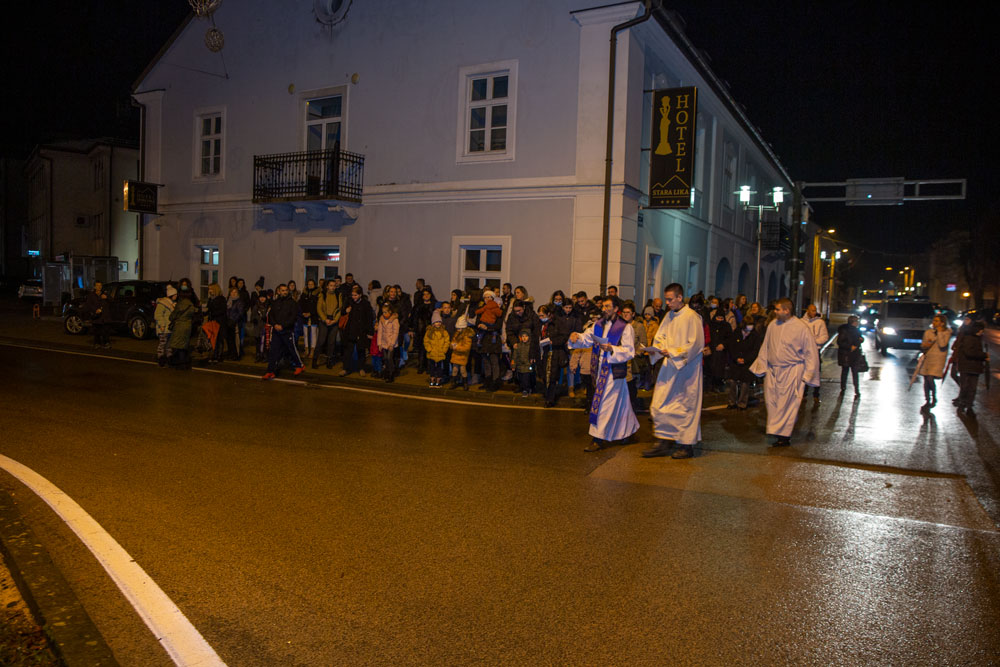 U duhu tradicije večeras je nakon večernje mise održane u gospićkoj katedrali Navještenja blažene djevice Marije, uz adventski vijenac postavljen oko kipa Marte vodarice u središtu Gospića okupilo se mnoštvo vjernika.