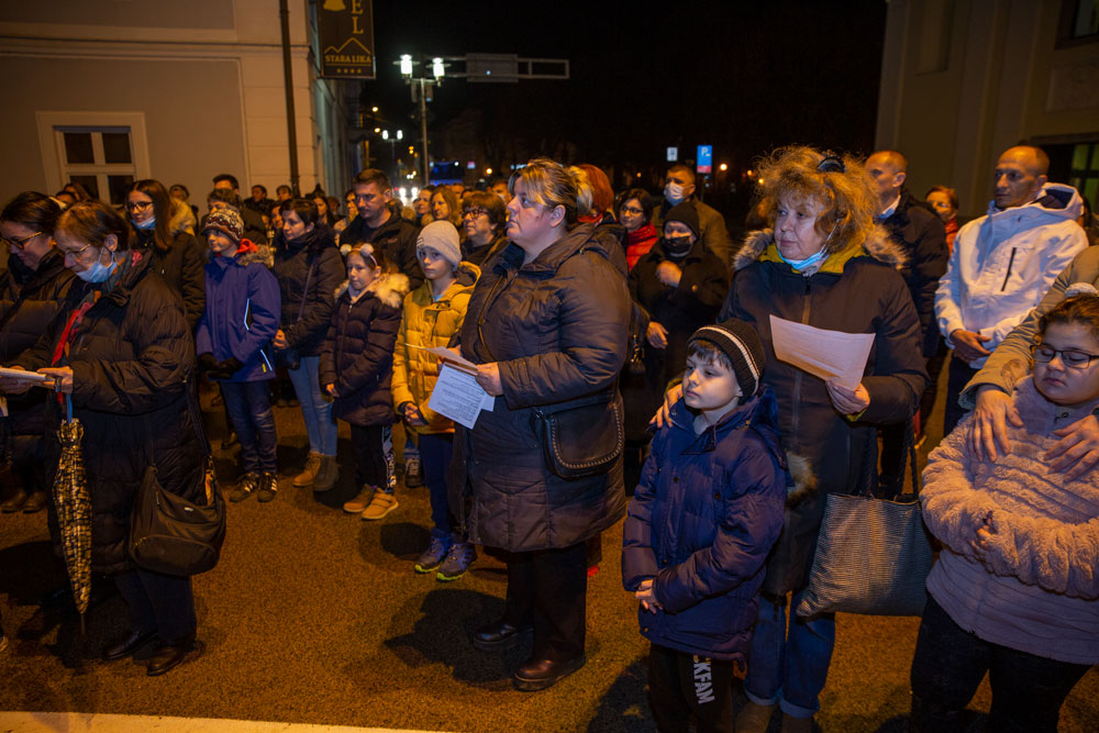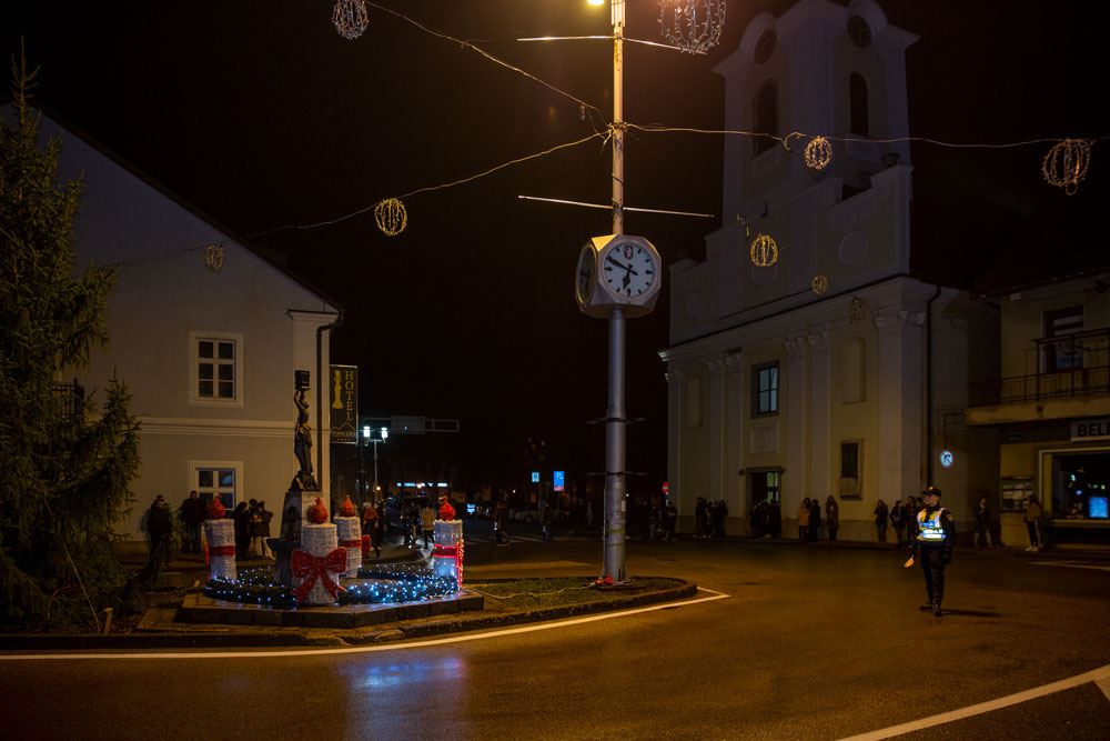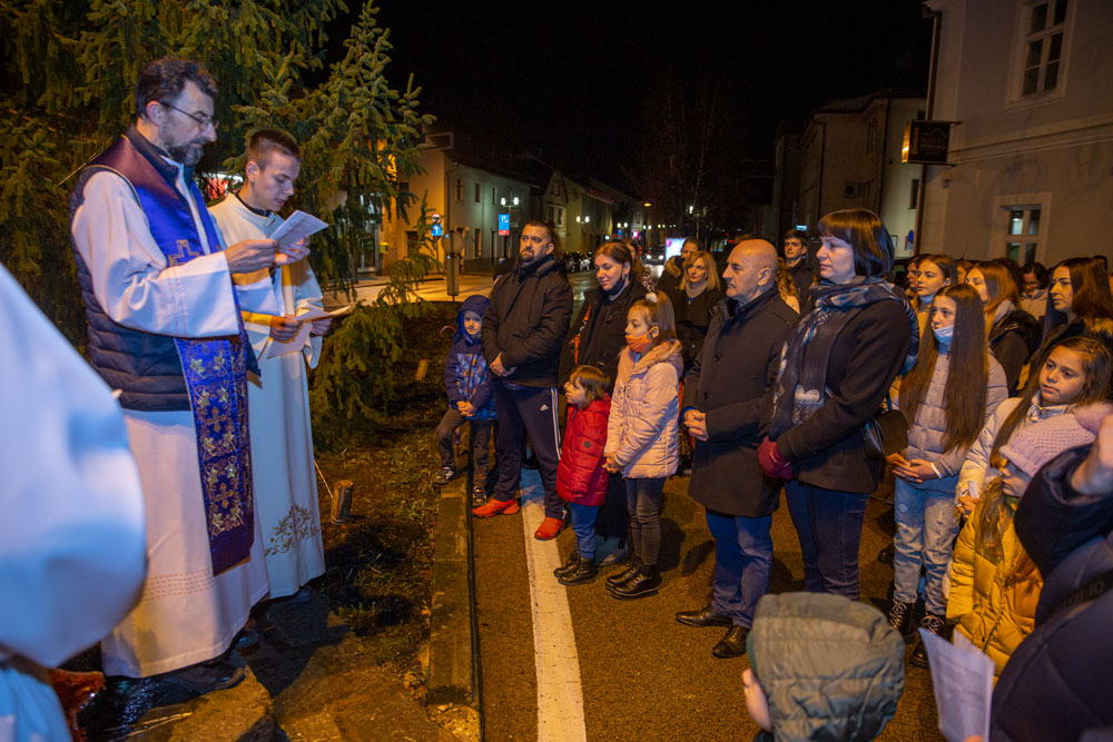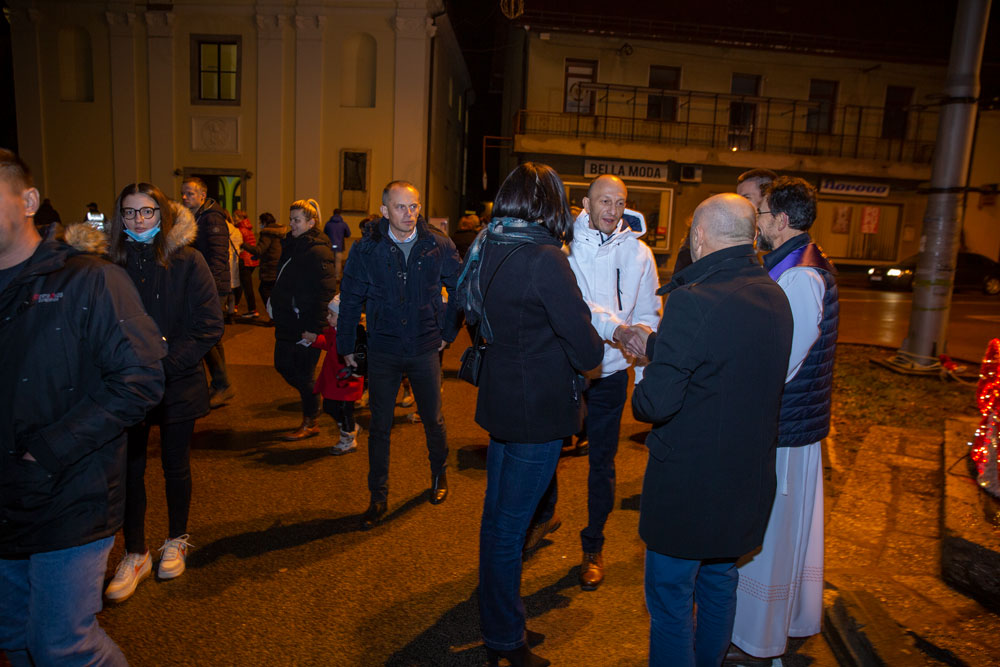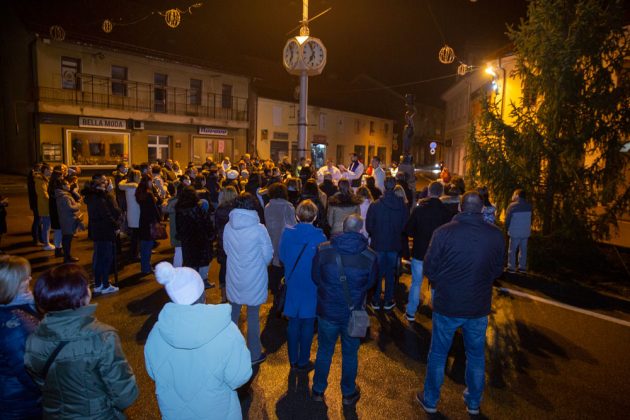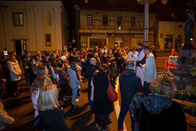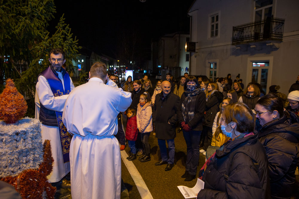 U duhu tradicije večeras je nakon večernje mise održane u gospićkoj katedrali Navještenja blažene djevice Marije, uz adventski vijenac postavljen oko kipa Marte vodarice u središtu Gospića okupilo se mnoštvo vjernika.