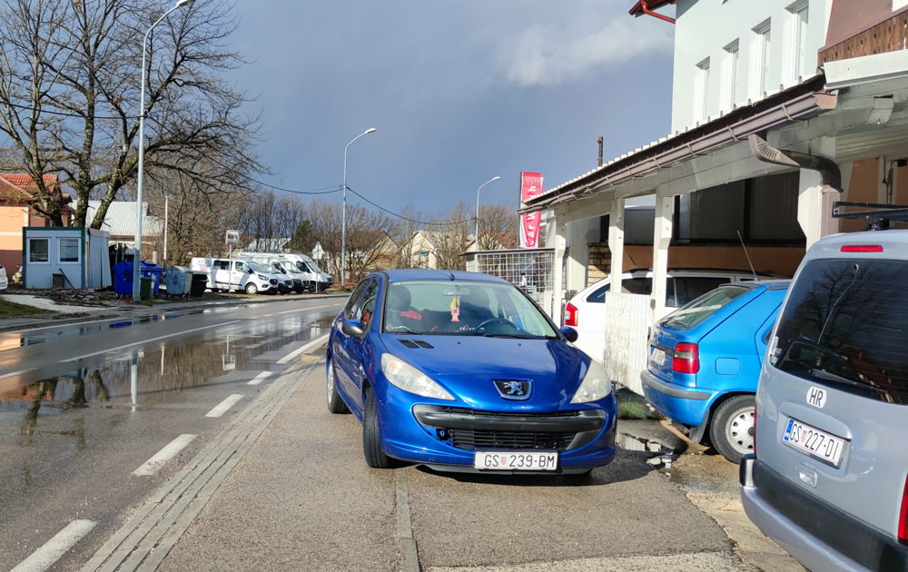 Drugi je gradski fenomen parkiranja uz same pješačke prijelaze, kao da su „zebre“ dobile drugu namjenu i postale površine za nepropisni parking.