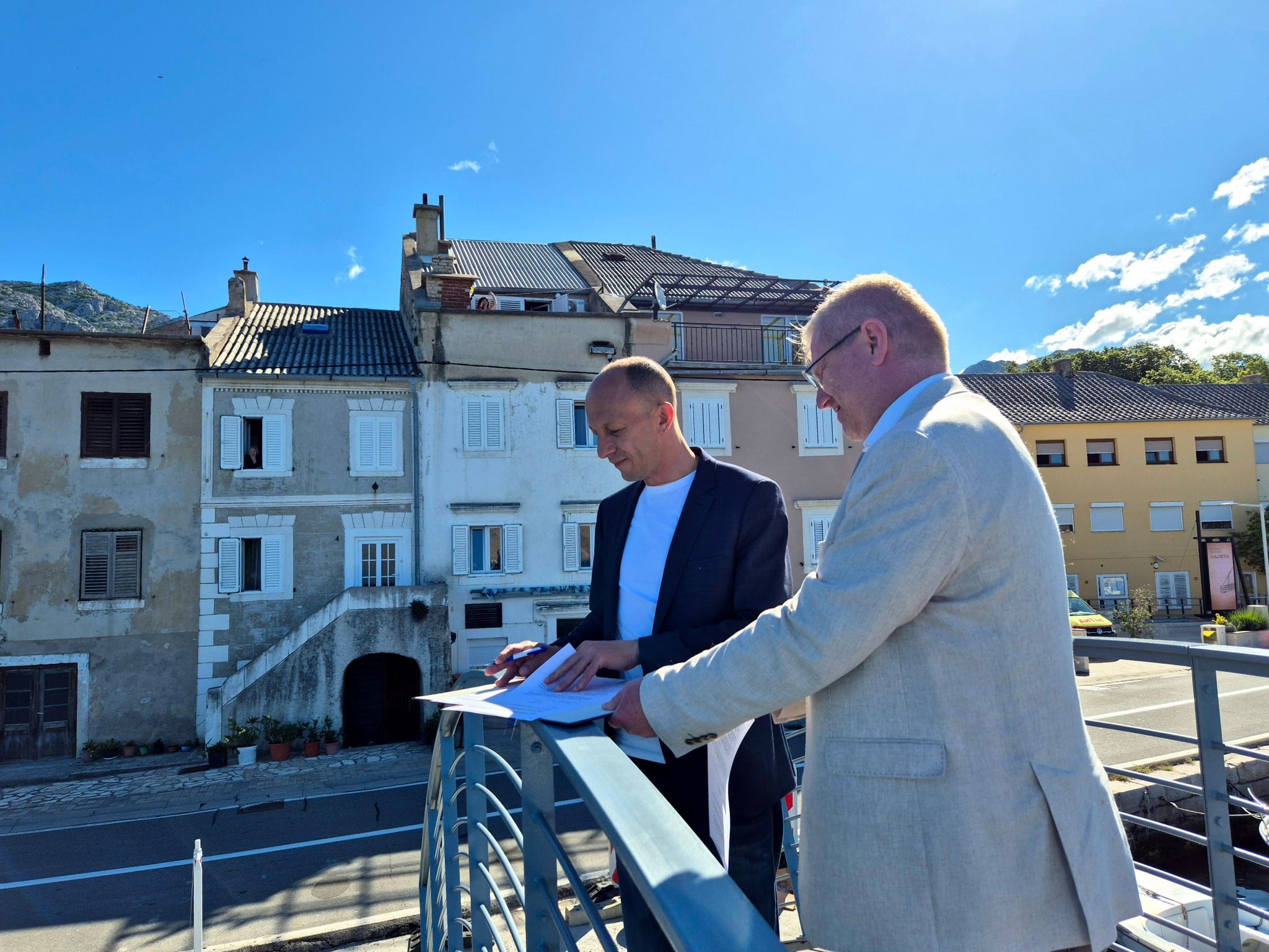 Prigodom obilaska mostića, župan Petry i načelnik općine Smojver potpisali su i Ugovor o dodjeli sredstava kojim Ličko-senjska županija dodjeljuje Općini Karlobag iznos od 45 tisuća eura za sufinanciranje sanacije hotelske plaže, koji radovi su u tijeku.