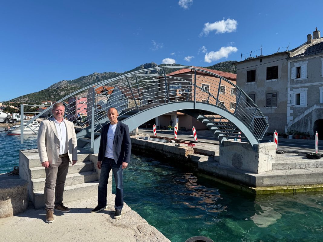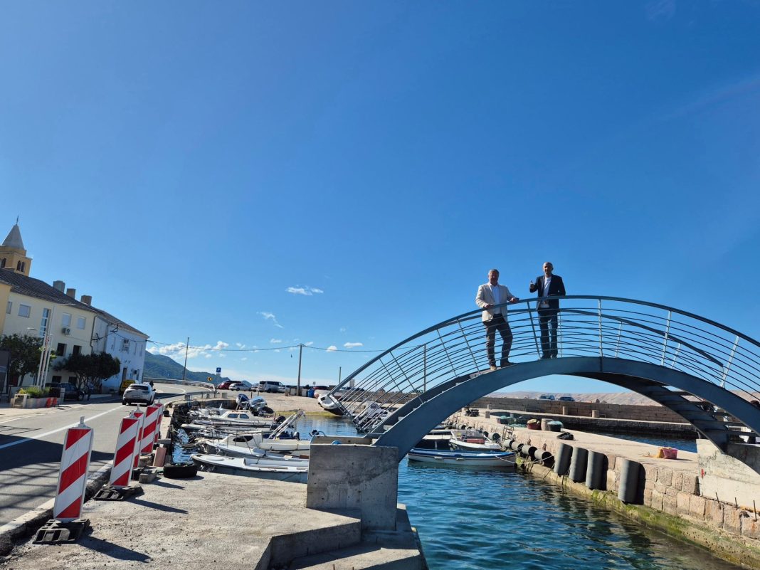 Ličko-senjski župan Ernest Petry u pratnji načelnika Općine Karlobag Borisa Smojvera, obišao je novoizgrađeni pješački mostić koji povezuje rivu i lučicu u Karlobagu. Vrijednost investicije iznosi 150 tisuća eura, a projekt predstavlja važan doprinos razvoju lokalne turističke i komunalne infrastrukture, ali ujedno i sigurnost kretanja pješaka. Riječ je o zanimljivoj konstrukciji koja spaja mol s rivom na uistinu poseban način, a ujedno je njegovom izgradnjom omogućena i svojevrsna kružna šetnica.