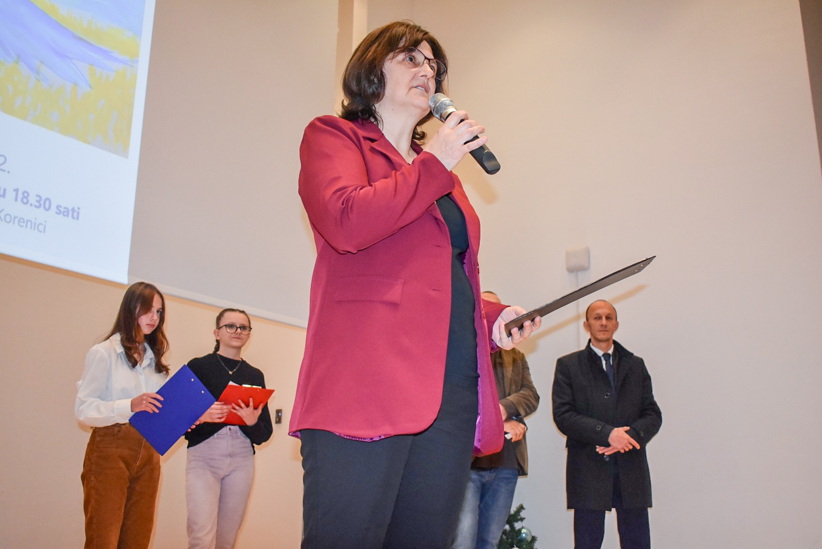 Velika dvorana Kulturno-informativnog centra u Korenici bila je večeras pretijesna da bi primila sve one koji su željeli pozdraviti otvaranje izložbe slika čiji su autori mali Ukrajinci. Kako je u uvodu rekla ravnateljica OŠ „dr. Franjo Tuđman“ iz Korenice Dražena Aračić, ovu školu pohađa 56 učenika iz Ukrajine, a njih 16 Srednju školu Plitvička Jezera.