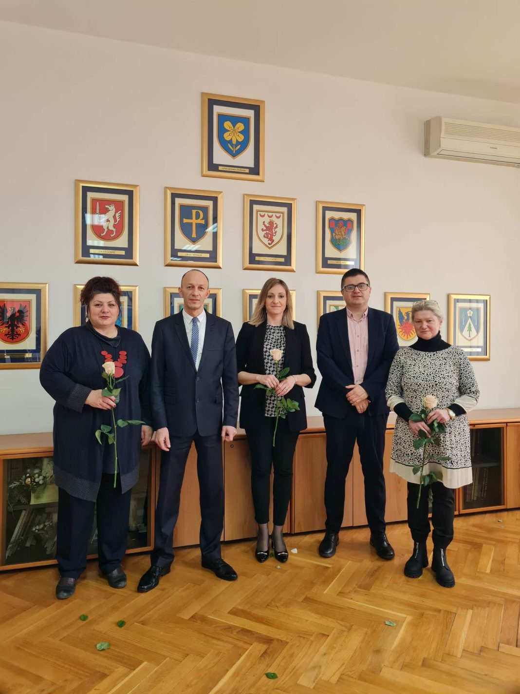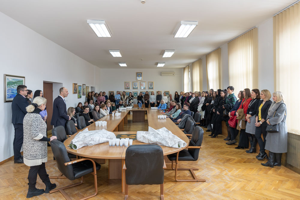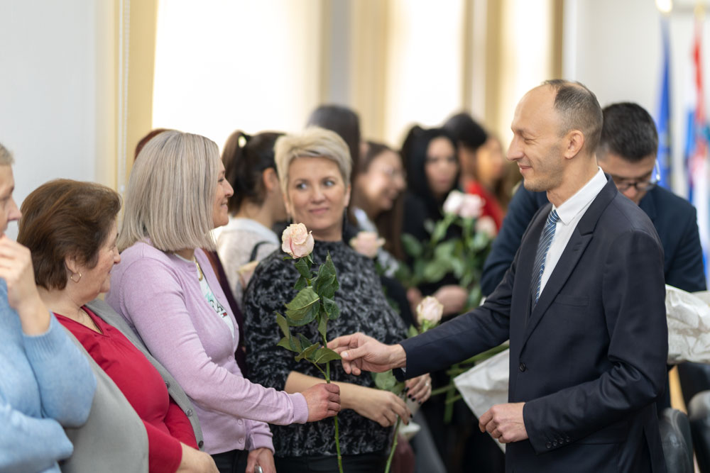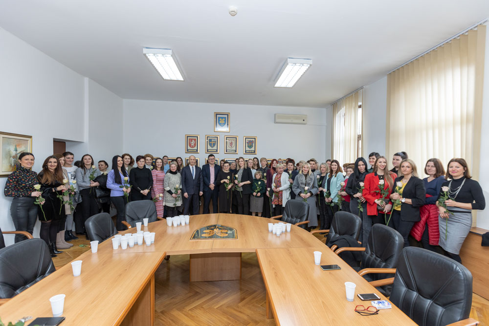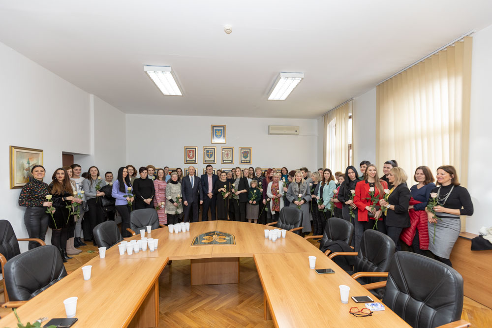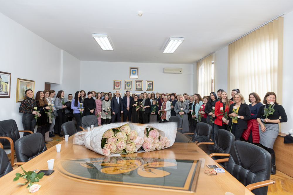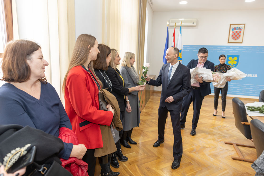 Župan je uputio zahvale djelatnicama na doprinosu u radu, uz naglasak kako žene čine veliku većinu zaposlenih u Županiji, navodeći i činjenicu da od 11 pročelnika Upravnih odjela, u 10 su ih upravo žene, napomenuvši “Prevladale ste nas!“ ponosno je i s neskrivenim zadovoljstvom istaknuo župan Petry.
