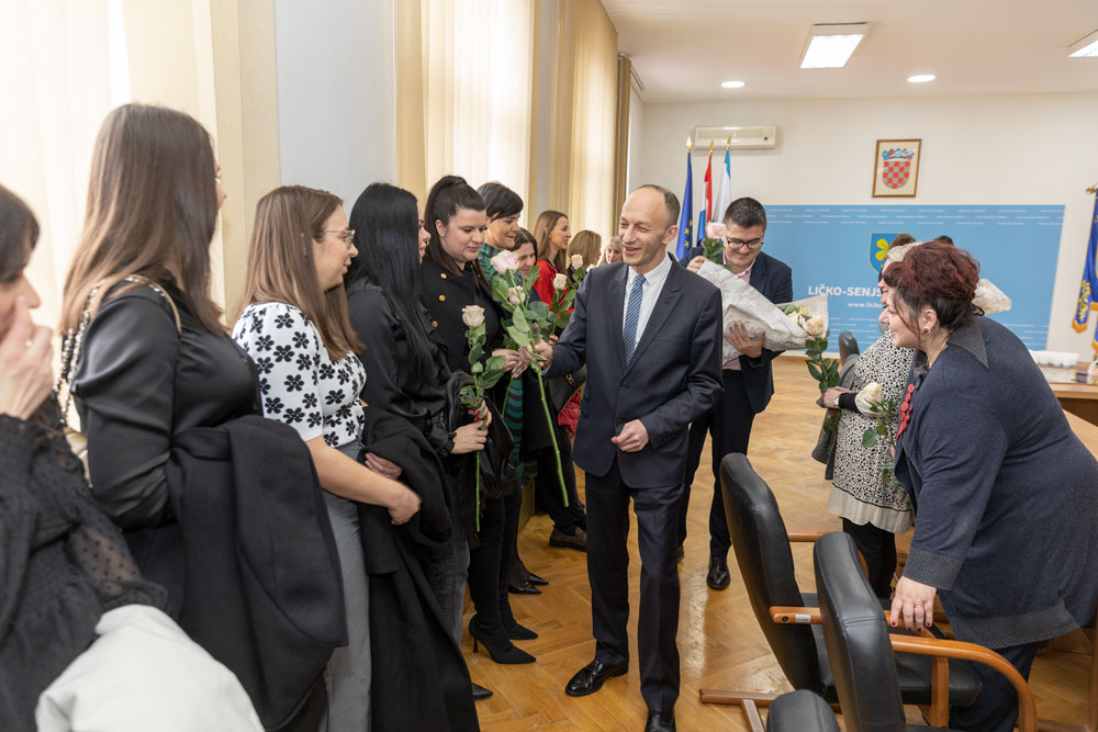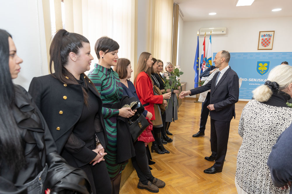 Ličko-senjski župan Ernest Petry jutros je organizirao prijem povodim Međunarodnog dana žena, kojom prigodom je uz zamjenika župana Milana Uzelca poklonio ruže zaposlenicama Županije povodom njihovog dana.