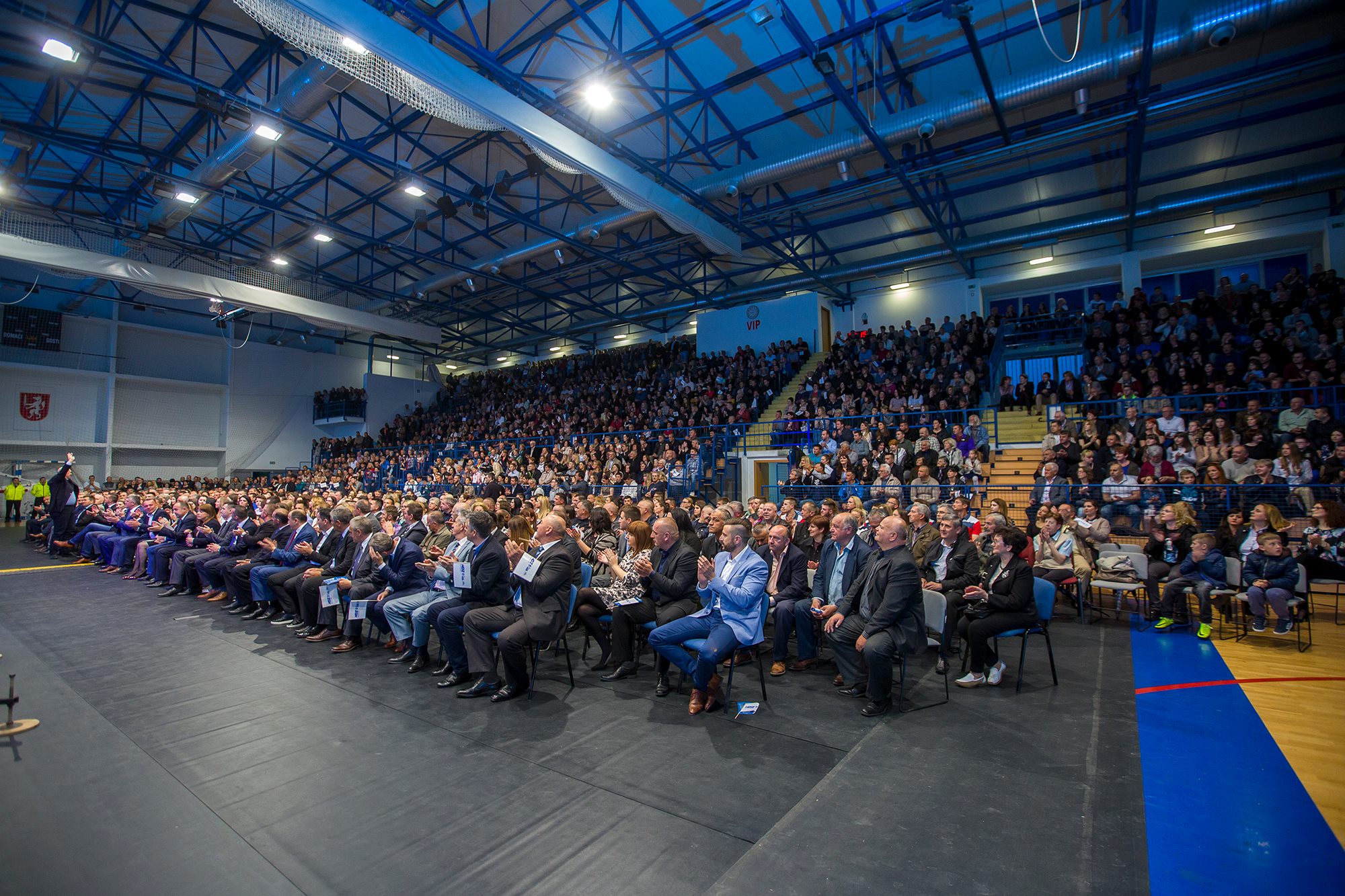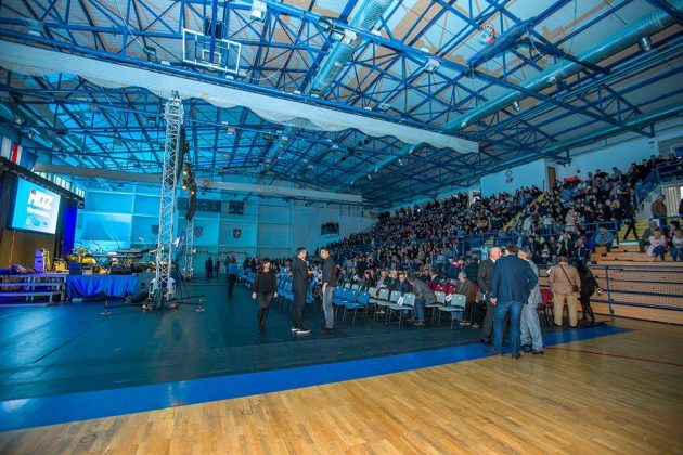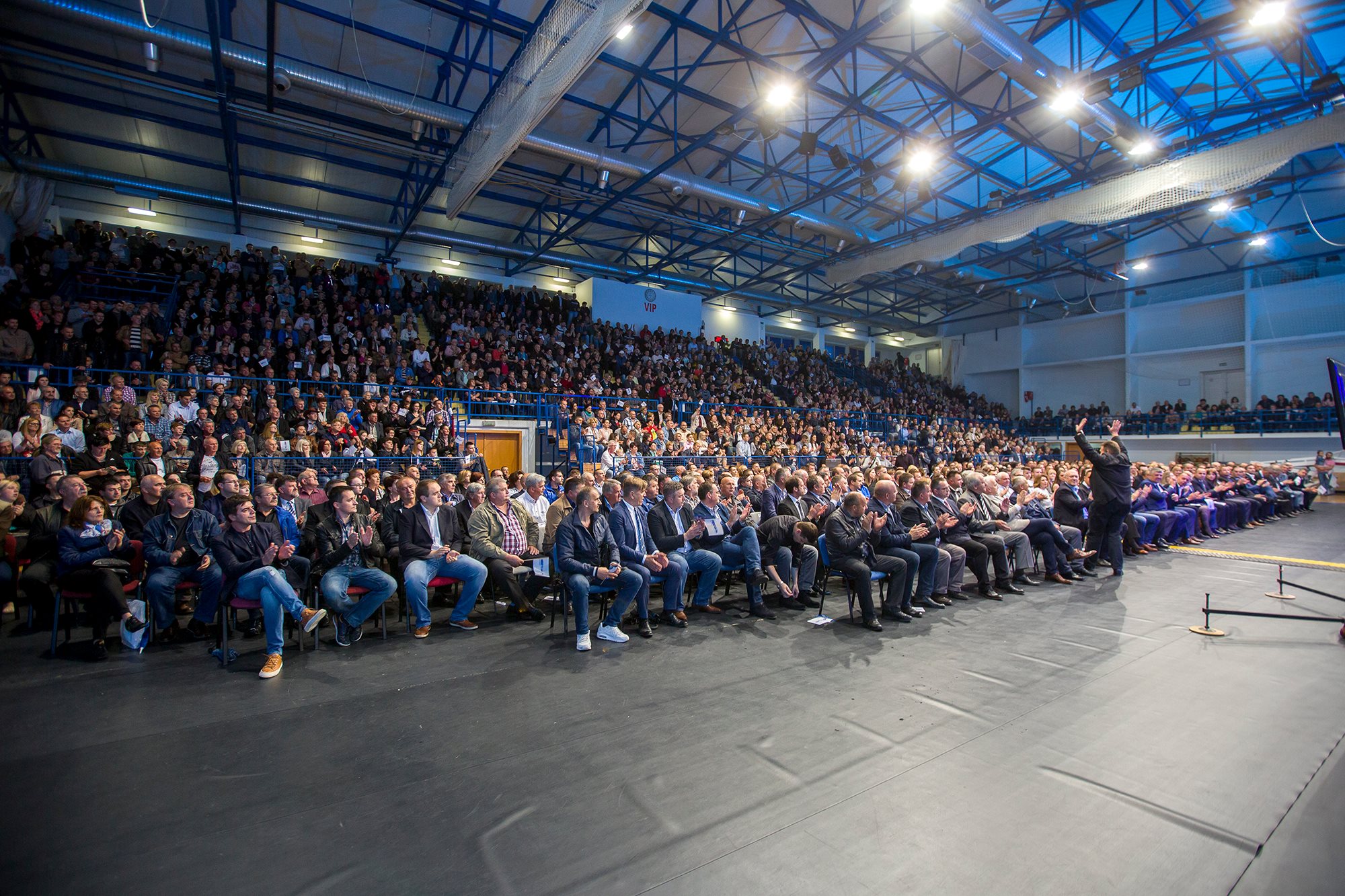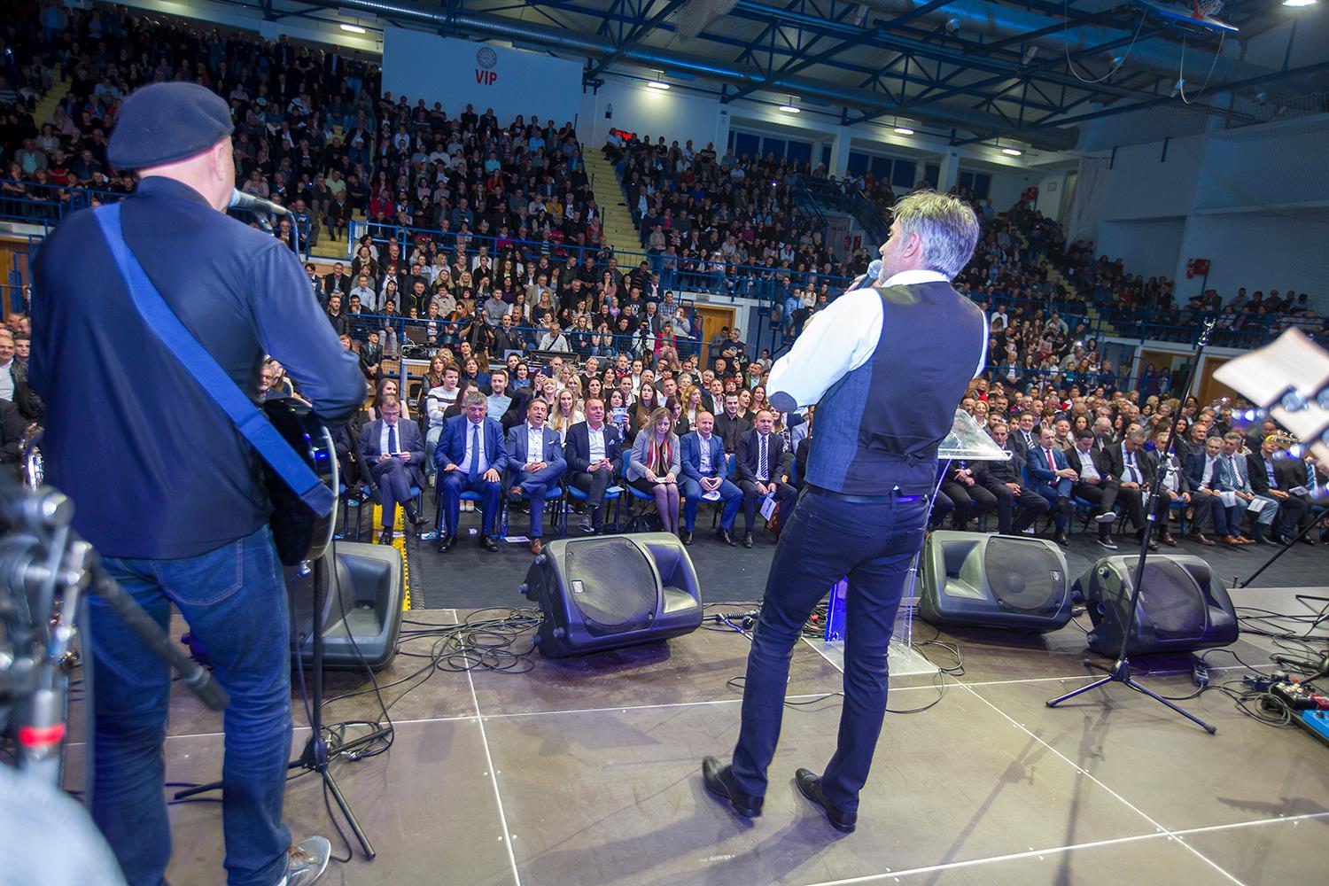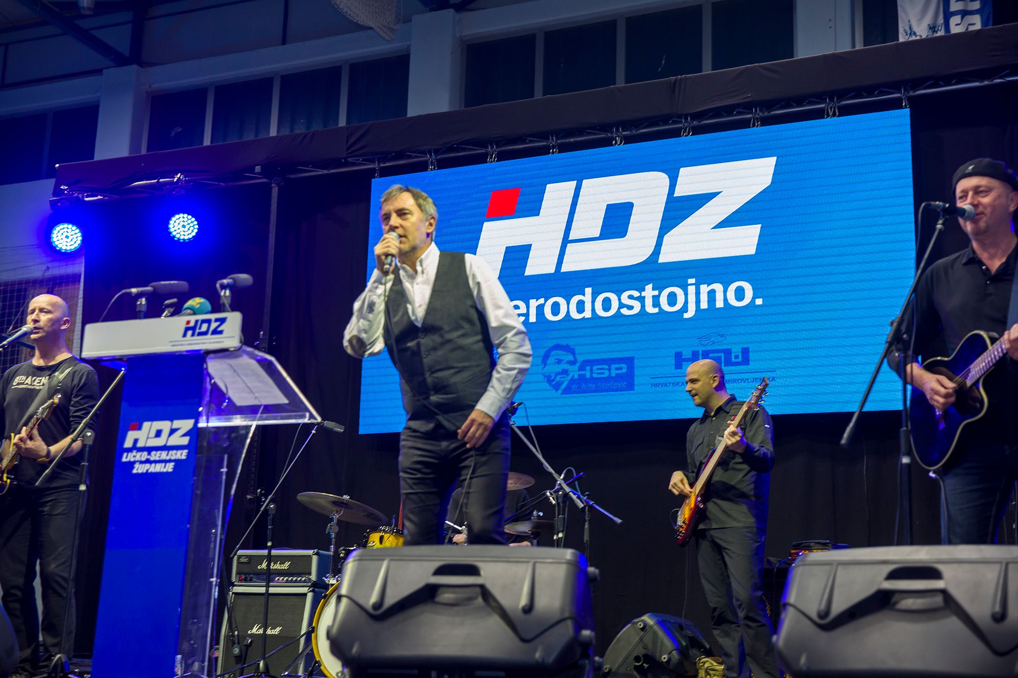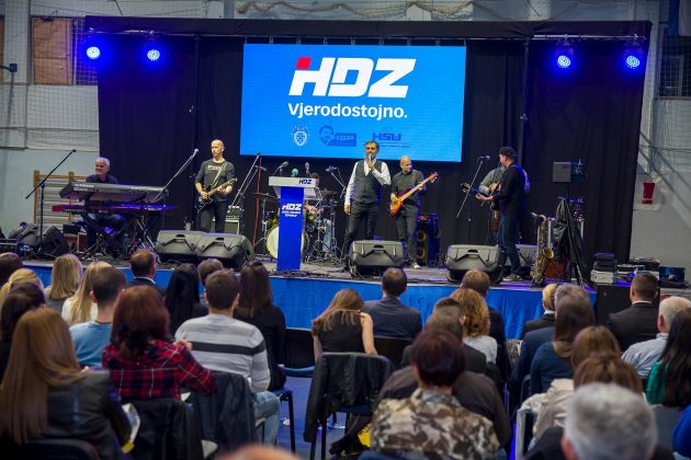 U nikad punijoj Gradskoj sportskoj dvorani u Gospiću započeo je u 20 sati predizborni skup HDZ-a. U uvodnom dijelu programa nastupila je Ana Rucner. U nastavku skupa očekuje se obraćanje kandidata za gradonačelnika Petra Krmpotića i kandidata za župana dr. Darka Milinovića, kao i koncert Miroslava Škore.