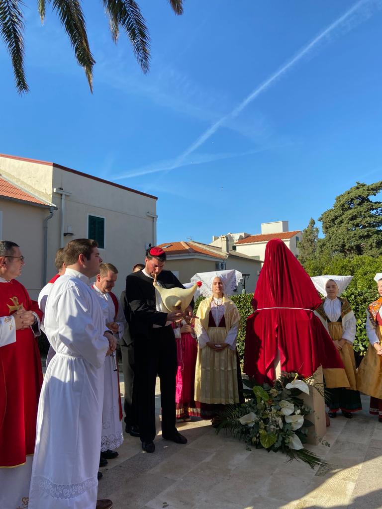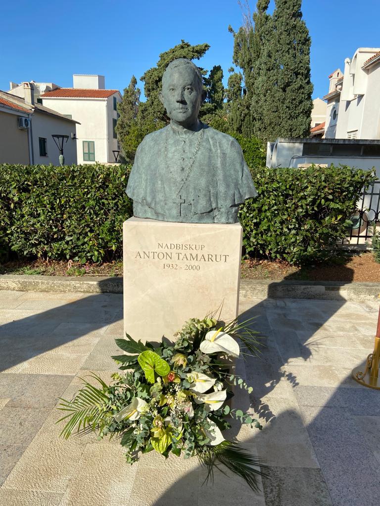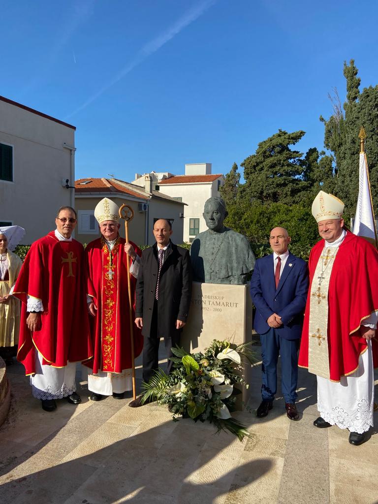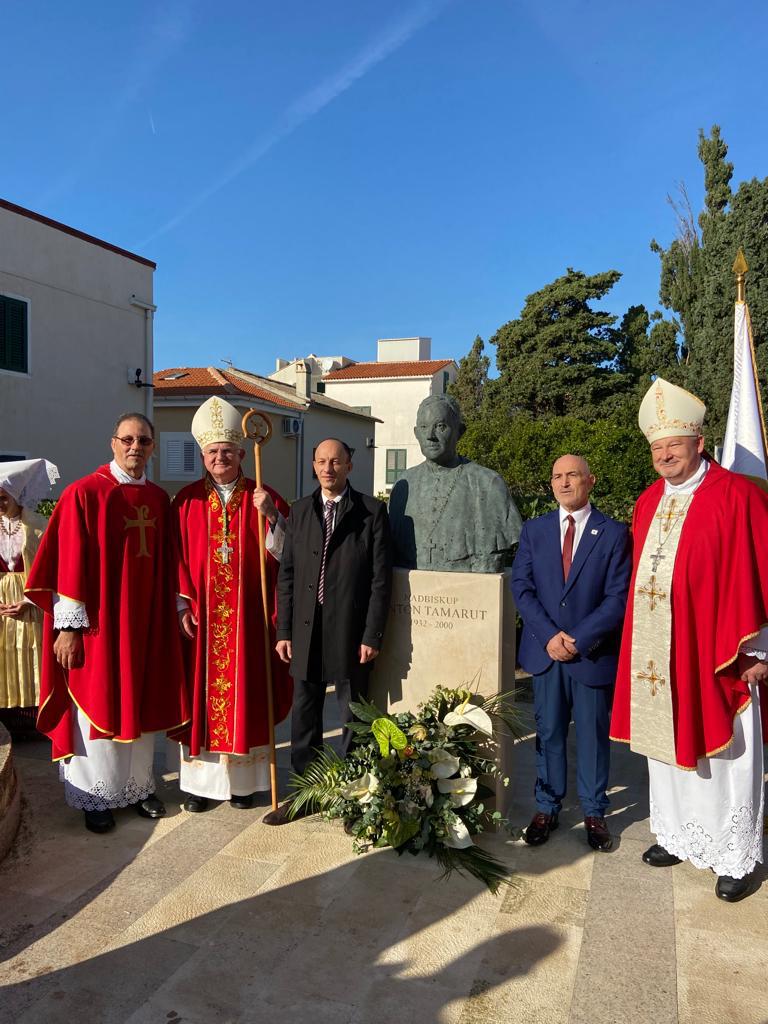 NOVALJA – U sklopu obilježavanja 90. obljetnice rođenja i 65. obljetnice svećeničkog ređenja i Mlade mise nadbiskupa Antona Tamaruta, na blagdan sv. Katarine Aleksandrijske kao zaštitnice Župe Novalja, danas je upriličeno svečano otkrivanje biste nadbiskupu Antonu Tamarut. Svečanost je započela euharistijskim slavljem u Crkvi sv. Katarine koje je predvodio nadbiskup Riječke nadbiskupije mons. Mate Uzinić u kojemu su sudjelovali krčki biskup mons. Ivica Petanjak, prof. dr. sc. Anton Tamarut te župnik Crkve sv. Katarine Ranko Papić.