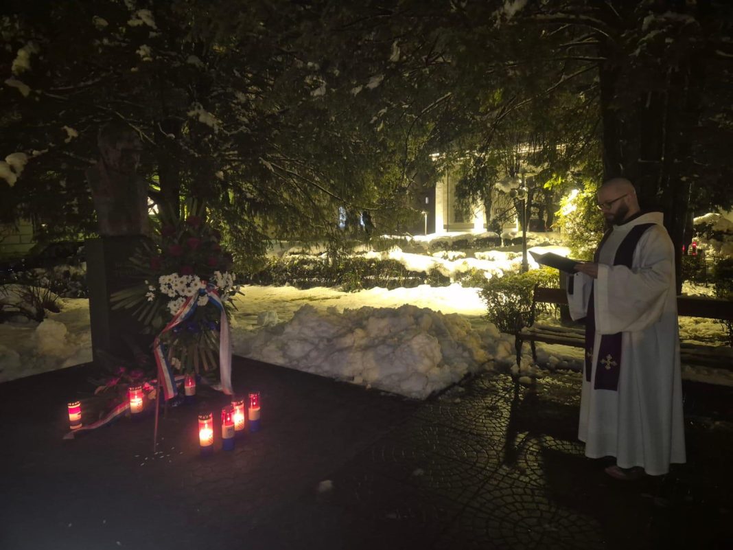 Nakon služenja svete mise u organizaciji ŽO HDZ-a Ličko-senjske županije, GO HDZ-a grada Gospića, Zajednica utemeljitelja HDZ-a “Dr. Franjo Tuđman”, Zajednica branitelja HDZ-a “Gojko Šušak”, Zajednica žena HDZ-a “Katarina Zrinski” i Mladež HDZ-a grada Gospića zapaljene su svijeće ispred biste dr. Franje Tuđmana na Trgu Alojzija Stepinca u središtu Gospića. Molitvu je predvodio gospićki župnik o. Marko Maglić