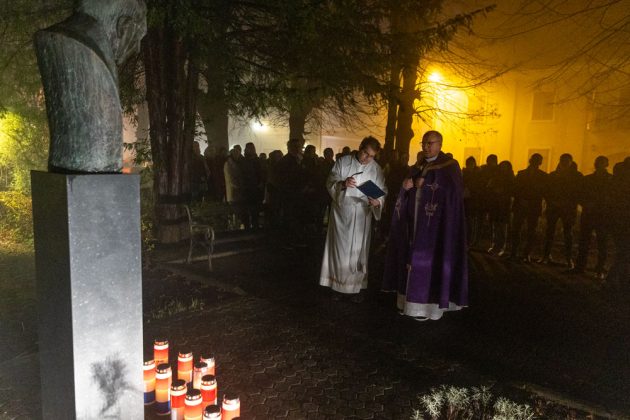 Prije početka služenja svete mise u organizaciji ŽO HDZ-a Ličko-senjske županije, GO HDZ-a grada Gospića, Zajednica utemeljitelja HDZ-a “Dr. Franjo Tuđman”, Zajednica branitelja HDZ-a “Gojko Šušak”, Zajednica žena HDZ-a “Katarina Zrinski” i Mladež HDZ-a grada Gospića zapaljene su svijeće ispred biste dr. Franje Tuđmana na Trgu Alojzija Stepinca u središtu Gospića. Molitvu je predvodio gospićki župnik o. Anto Knežević.