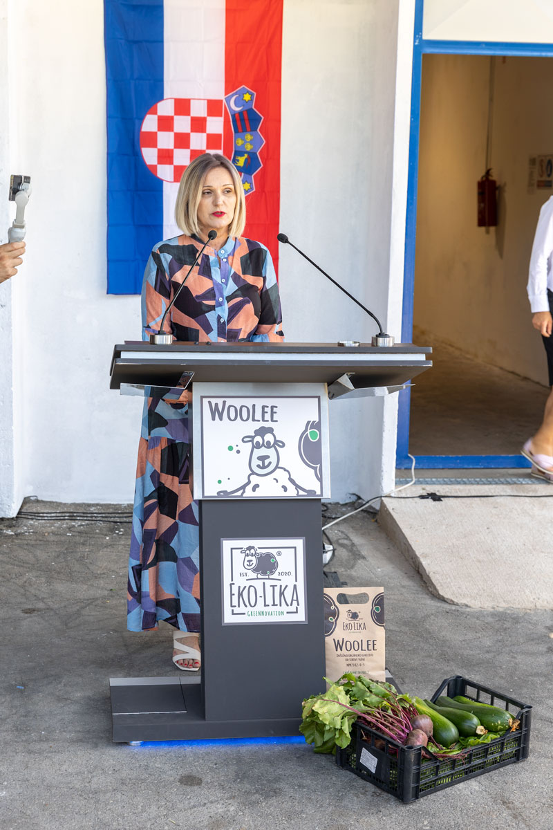Ovo u Otočcu je zapravo eksperiment u čijem je središtu laboratorij sa sjajnim izumima. Mi smo kao obitelj vjerovali da ćemo u Lici napraviti prvi pogon za preradu ovčje vune u visoko kvalitetno prirodno gnojivo. Zahvaljujem svima vama koji ste nam dali podršku da bismo pokrenuli ovaj pogon, hvala mladim inovatorima koji su ovaj pogon ugradili svoje znanje i vrijedne ideje. Mnogo je ljudi i institucija kojima dugujemo zahvalnost: brojna ministarstva, župan Ernest Petry, gradonačelnik Goran Bukovac, Obrtnička komora, Razvojni centar… Svi vi ste nas „gurajući“ u ovu priču ohrabrili da ne odustanemo. Dva proizvoda koja smo stvorili je organsko gnojivo „Woolee“ i reperent „Woolee“. Oba su proizvoda pokazala izvanredne vrijednosti kao dušična gnojiva, uz sadržaj drugih minerala neophodnih za rast bilja. U ovoj tvornici je sve „po prvi put“. Inovativni su strojevi i tehnologija, a mi još uvijek tražimo neke smjerove za daljnje širenje i usavršavanje proizvodnje, rekla je Dragica Jerkov i dodala kako se Hrvatskoj baca deset puta više vune nego li će biti optimalni kapaciteti ove tvornice. Pokretanje proizvodnje ove tvornice u Otočcu i zapošljavanje 12 radnika pozdravio je i gradonačelnik Grada Otočca  Goran Bukovac rekavši kako se na ovaj način nastavlja gospodarski uspon ovoga grada. Novi proizvodni pogon i njegov značaj za Otočac i Liku  definirao je i župan Ernest Petry.