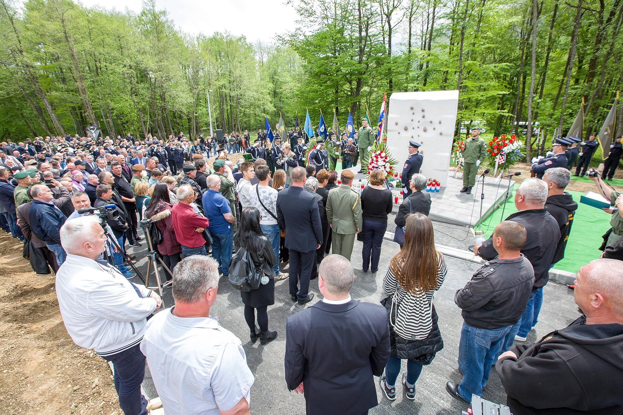 -Kroz snagu i požrtvovnost hrvatske policije gradila se Hrvatska vojska. Bili smo svjedoci toga vremena i nemamo prava zaboraviti na sve te žrtve. Drago mi je što smo se danas okupili u vrlo velikom broju, da bismo ušutkali one zle duše koje vole reći da smo „šaka jada“. Mi moramo prenositi istinu o Domovinskom ratu, snagu pobjedničke vojske na koju svi zajedno moramo biti ponosi, rekao je izaslanik predsjednice RH Ante Deur. Pokrov sa spomenika skinula su djeca poginulih specijalaca, sinovi i kćeri Velebitskih junaka. Vijenac na spomenik položila su izaslanstva predsjednice RH, Hrvatske Vlade, Hrvatskog sabora, izaslanstvo MUP-a RH, članovi obitelji poginulih, Ličko-senjske županije i Grada Gospića. Riječi molitve predvodio je biskup i miru mons. dr. Mile Bogović, uz koncelebraciju policijskog kapelana Ivana Blaževca.
