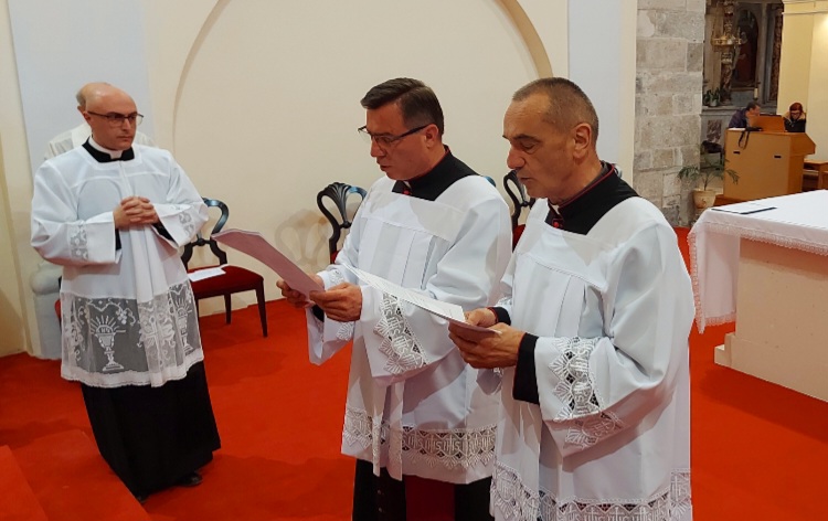 Novi kanonici su potom ispovijedili svoju vjeru, izrekli prisegu vjernosti i poslušnosti biskupu Ordinariju i senjskom kaptolu te pojedinačno pristupili pred biskupa koji im je podijelio kanonička obilježja: biret, mocetu i kanonički križ. Nakon toga prepozit kaptola mons. Mile Čančar poveo je nove kanonike na njihova mjesta u konkatedralnom koru.