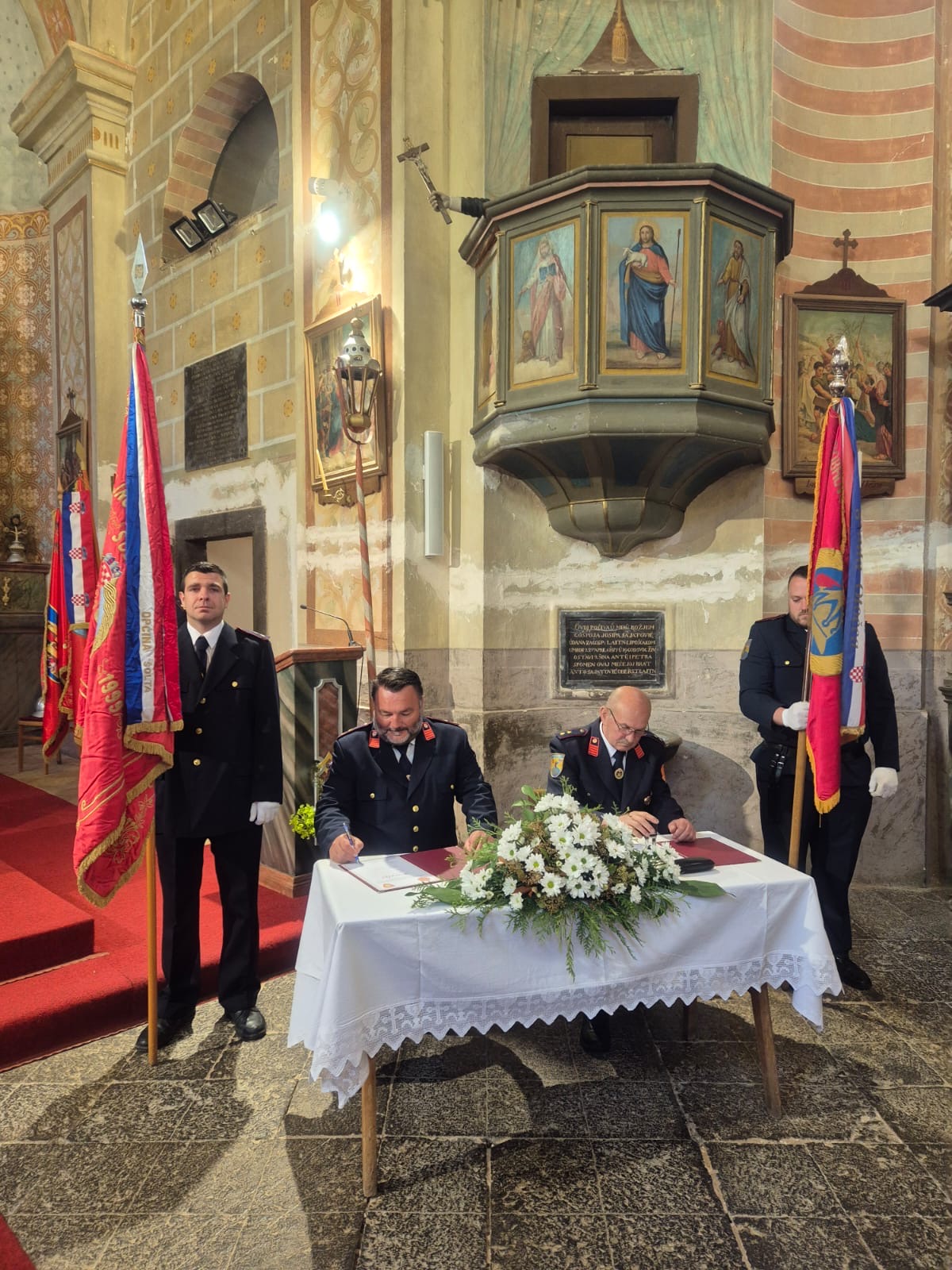 Uslijedila je Sveta misa u Crkvi Sv. Ilije Proroka koju je predvodio vlč. Goran Antunović uz koncelebraciju don Jure Ladišića. U sklopu Svete mise potpisana je Povelja o bratimljenju članova DVD-a Sinac i članova DVD-a Šolta u Crkvi Sv. Ilije Proroka.