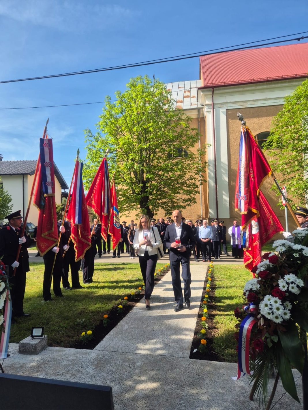 Svečanost je započela mimohodom članova vatrogasnih postrojbi, nakon čega su nazočni odali počast hrvatskim braniteljima polaganjem vijenaca i paljenjem svijeća kod Spomen-obilježja poginulim braniteljima iz Sinca.