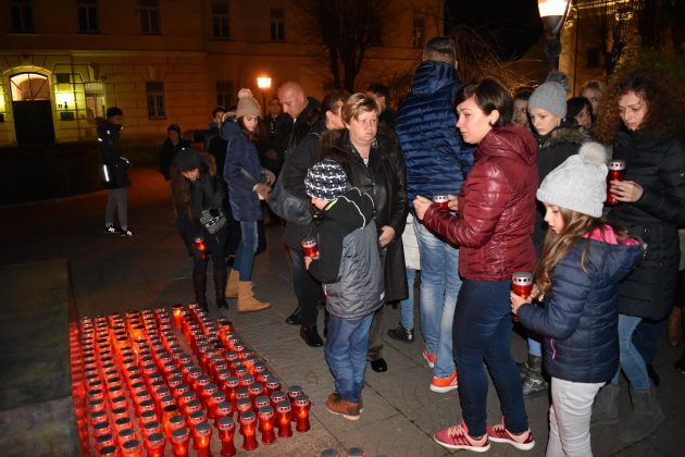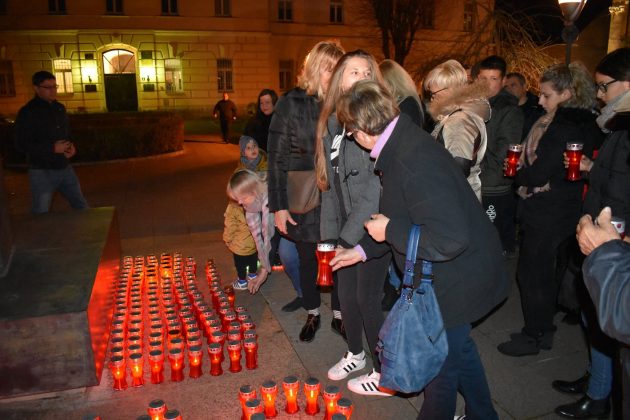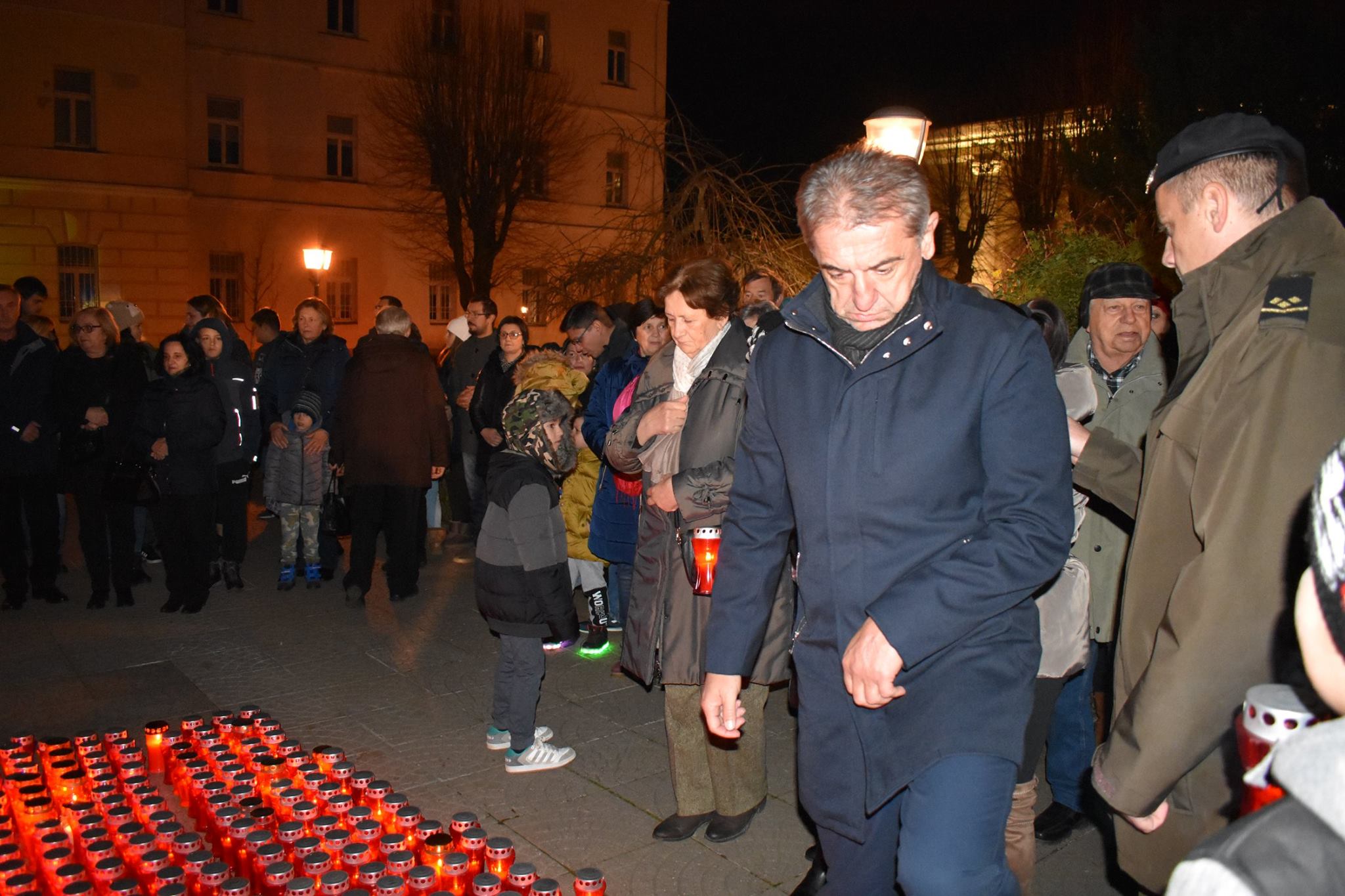 Prostor oko spomenika bio je večeras pretijesan da bi primio sve one koji su željeli na ovaj način izraziti pijetet prema žrtvama Vukovara i Škabrnje, gradova koji su na današnji dan zbrisani s lica Zemlje. Unatrag dvadeset i više godina u Gospiću su nakon mise u katedrali uvijek bile formirane procesije koje su uz molitve išle prema najvećem gradskom trgu gdje se palilo 1 700 svijeća, koliko je žrtava imao Vukovar.