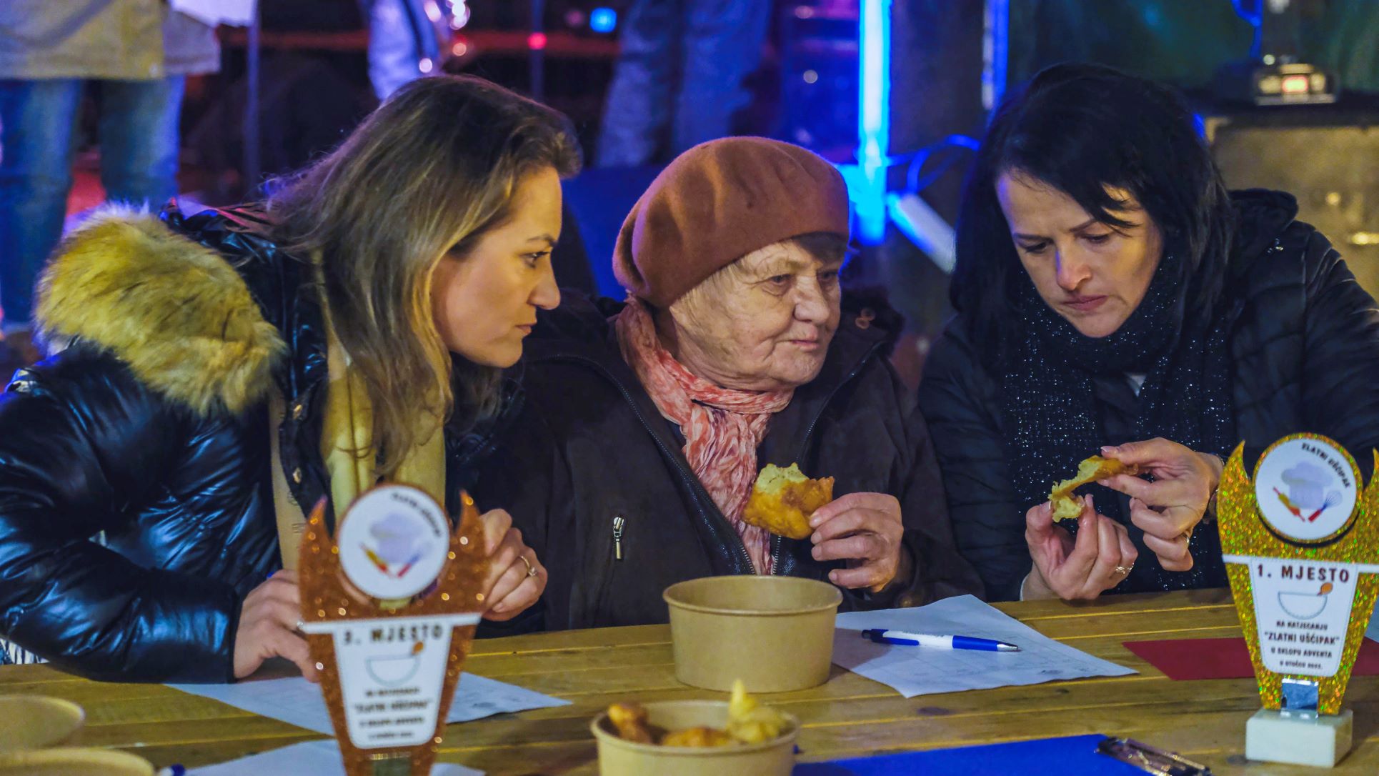 U subotu 17. prosinca održano je prvo natjecanje u pripremi uštipaka, a za „Zlatni ušćipak“ borile su se četiri ženske ekipe: Dame iz predgrađa, Kuterevke, Gačanke i tim AnaMar(i)ja. Članice žirija bile su: Ružica Dujmović vrsna poznavateljica tradicije i običaja, Ivana Bukovac vlasnica bistroa Ribič u Otočcu i Fitore Hodaj, vlasnica Pekarne Otočac, koje su ocjenama od 1 do 5 ocjenjivale boju, okus, izgled i kvalitetu tijesta. Nakon zbrojenih bodova pobjedu je odnio tim Kuterevke no osim pehara sva 4 tima dobila su simbolične nagrade. U subotu je upaljena i četvrta adventska svijeća uz pjesme i kolo KUD-a Lipa Sinac, a svijeću je upalio gradonačelnik Otočca Goran Bukovac.