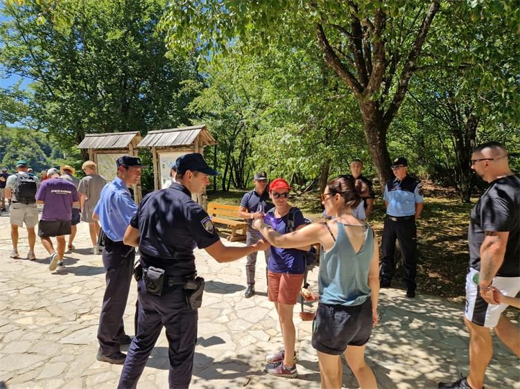 Policijski službenici su turistima u Nacionalnom parku Plitvička jezera i na Trgu bazilike u Novalji dijelili letke na info punktovima sa savjetima o samozaštitnom ponašanju.