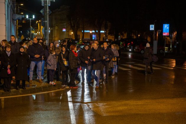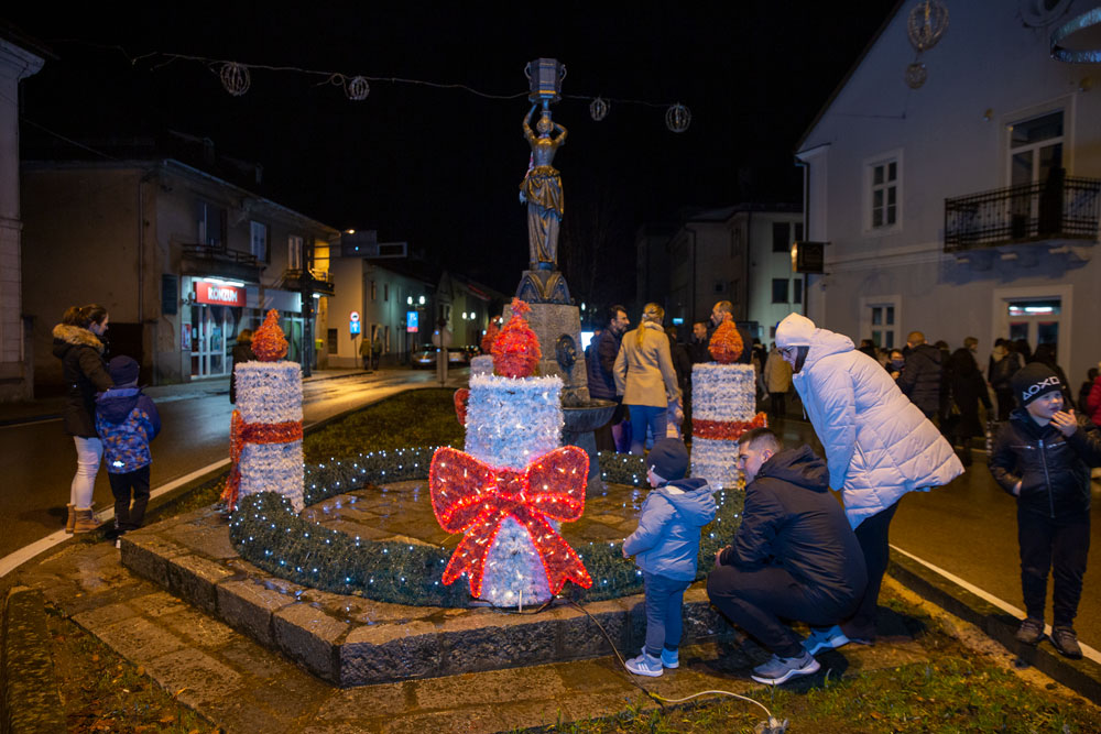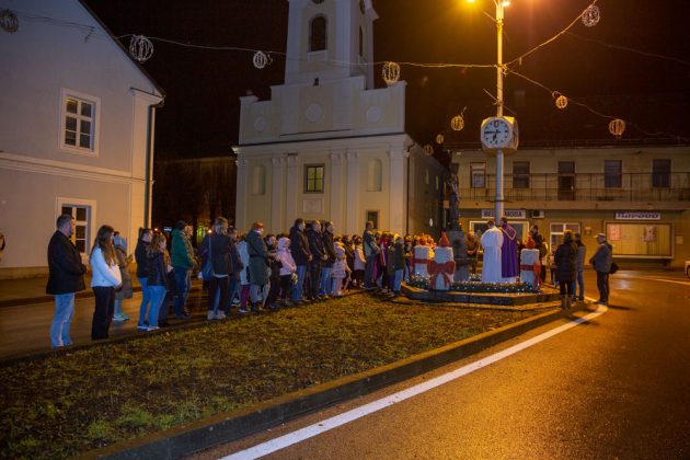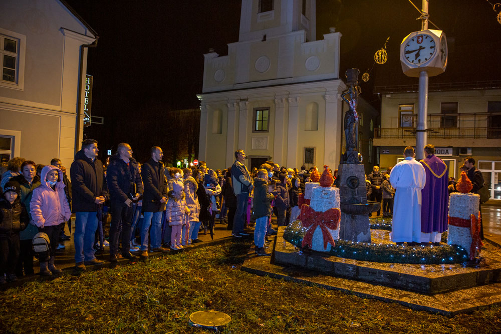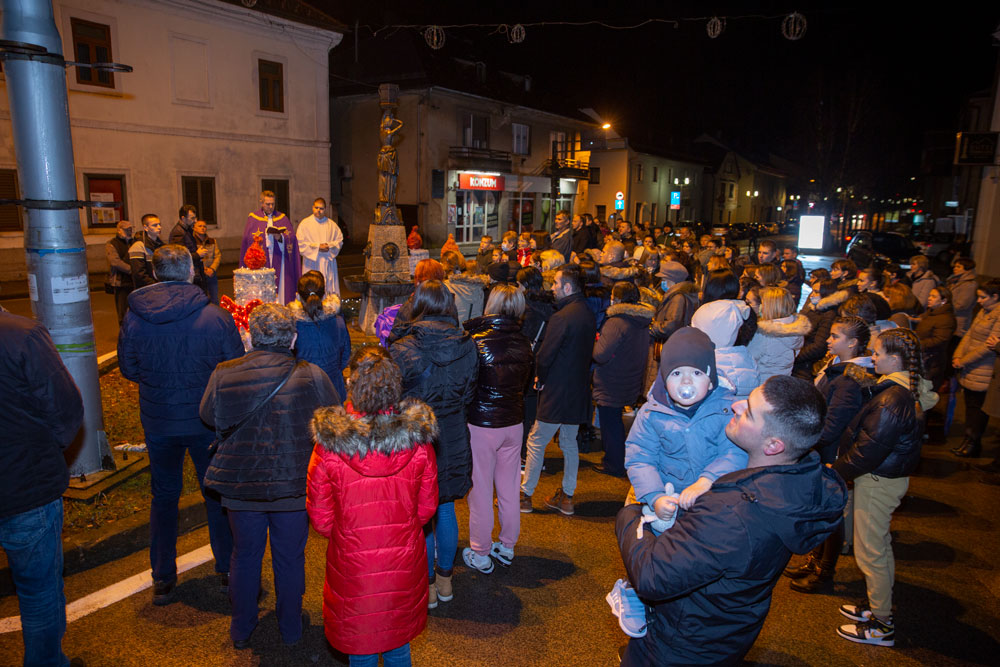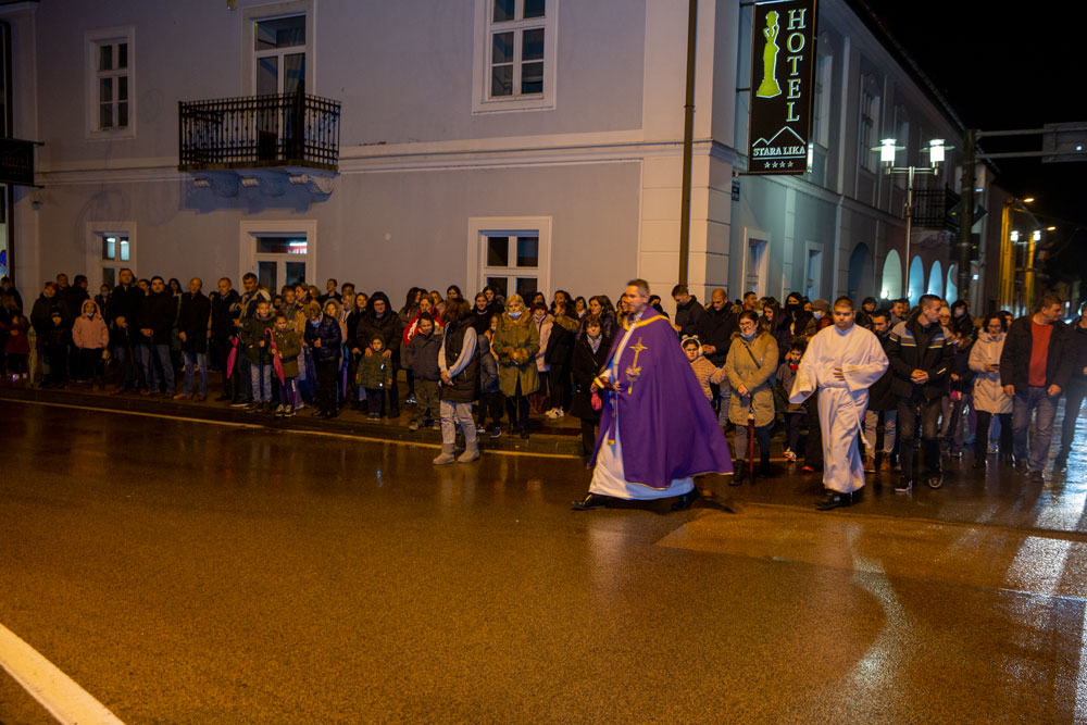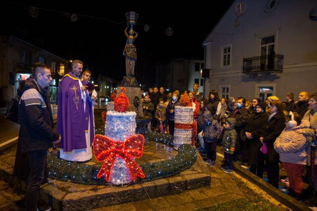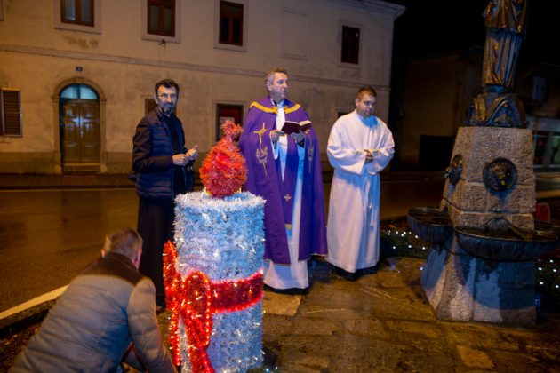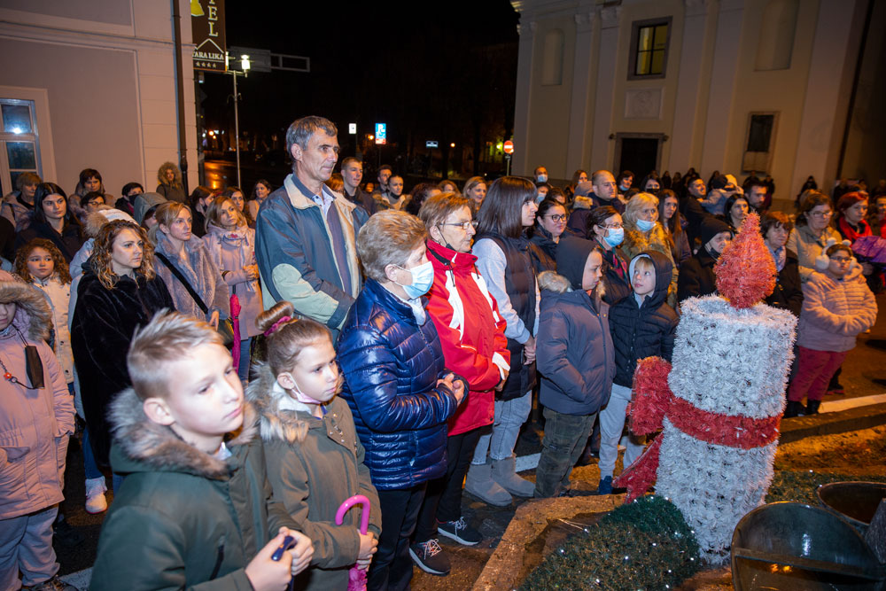 Nedaleko od katedrale Nevještenja Blažene Djevice Marije u središtu Gospića postavljen je adventski vijenac na kojem je nakon večernje svete mise upaljena prva svijeća. Svetu misu i molitve tijekom paljenja svijeća predvodio je gospićki župnik vlč. Marinko Miličević.