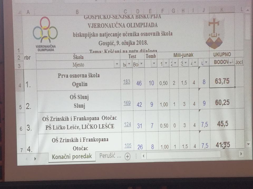 Najbolji u kategoriji osnovnih škola bila je Prva osnovna škola Ogulin, drugo mjesto pripalo je OŠ Slunj, dok je na trećem mjestu OŠ „Zrinskih i Frankopana“ iz Otočca, Područna škola Ličko Lešće.