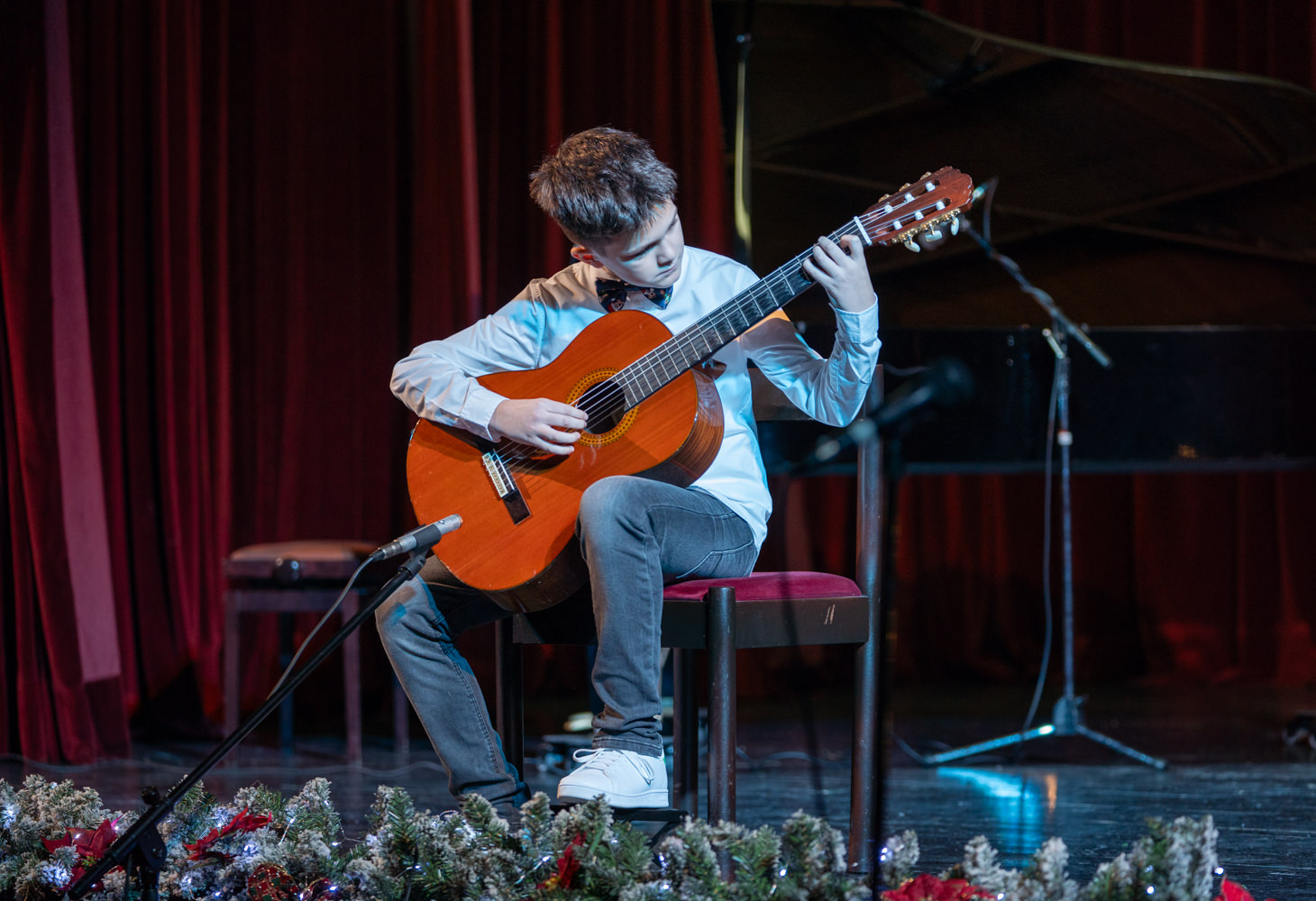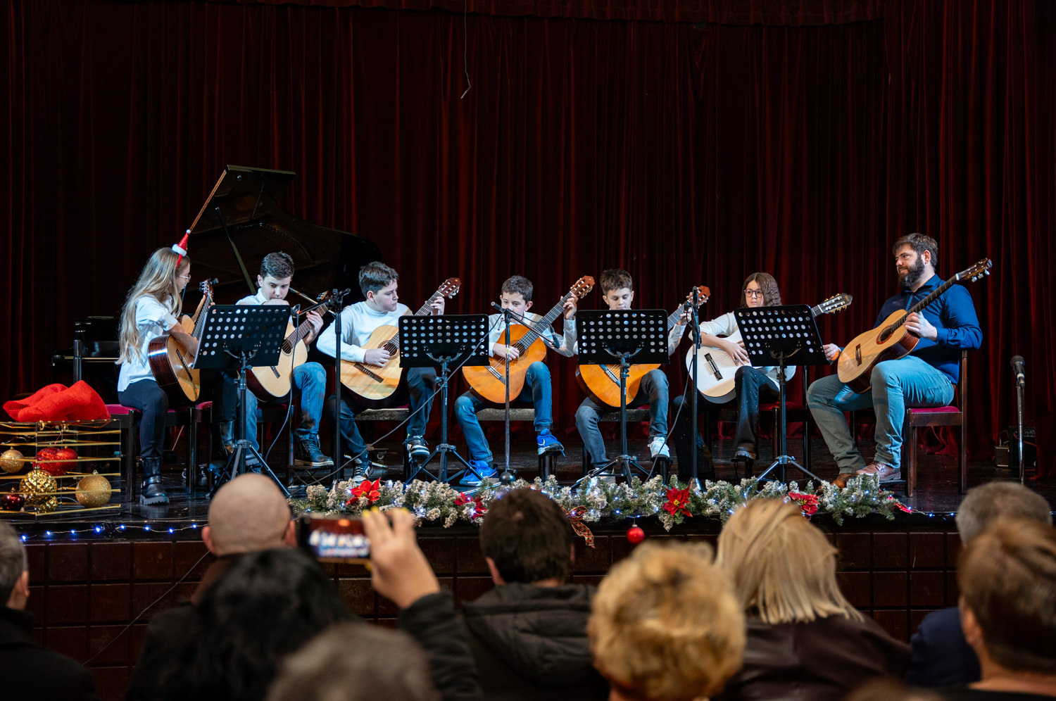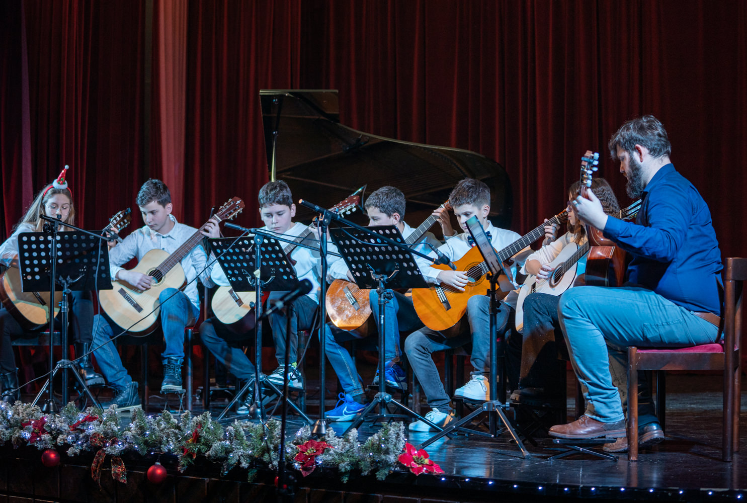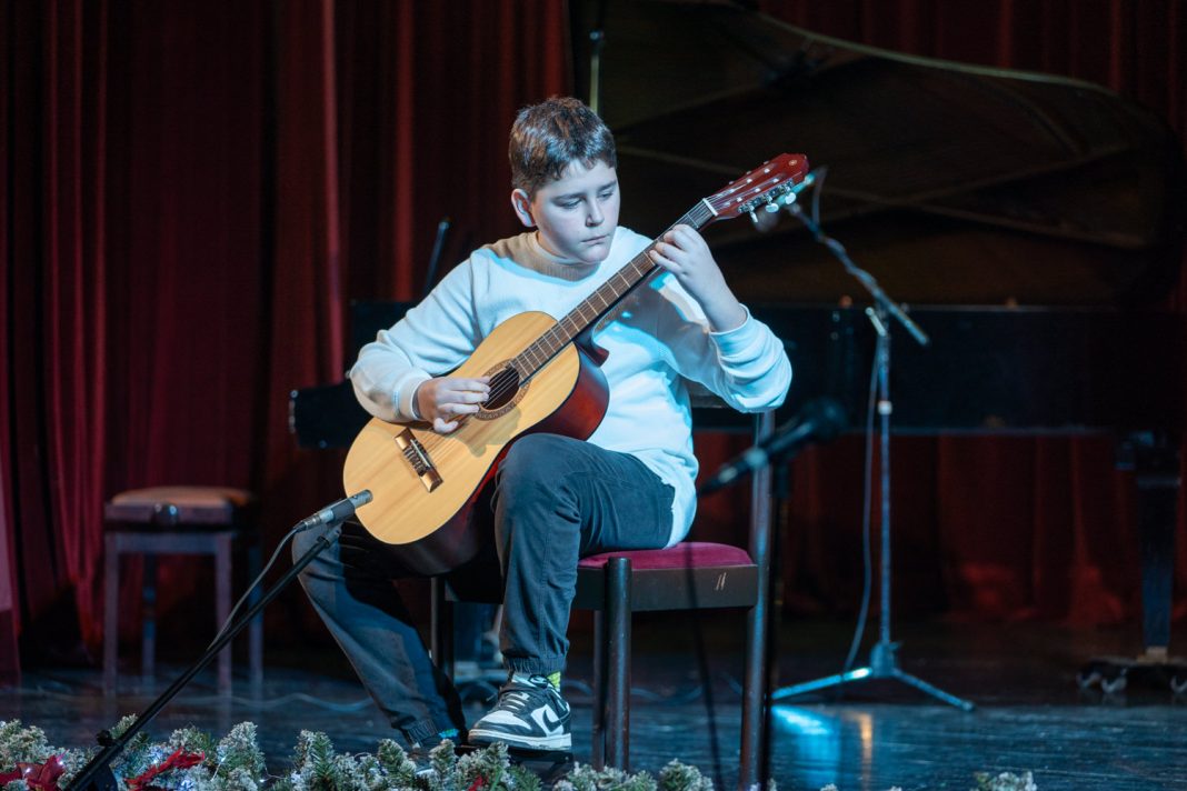Koncert je otvorio komorni sastav gitara izvedbom tradicionalne božićne pjesme “Joy to the world” pod ravnanjem učitelja Dina Jelinića, čiji je skladan i emotivan nastup izmamio pljesak i oduševljenje prisutnih. Program se nastavio solo izvedbama djela klasične glazbe na klaviru, violini, gitari, tamburi i harmonici, a posebnu pozornost privukli su najmlađi polaznici koji su tradicijskim pjesmama na tamburi osvojili srca publike.