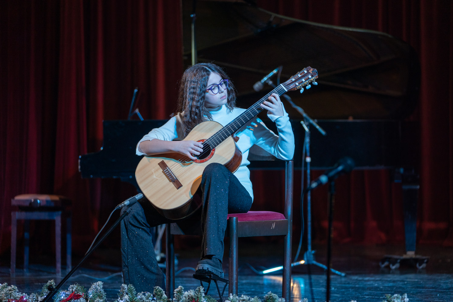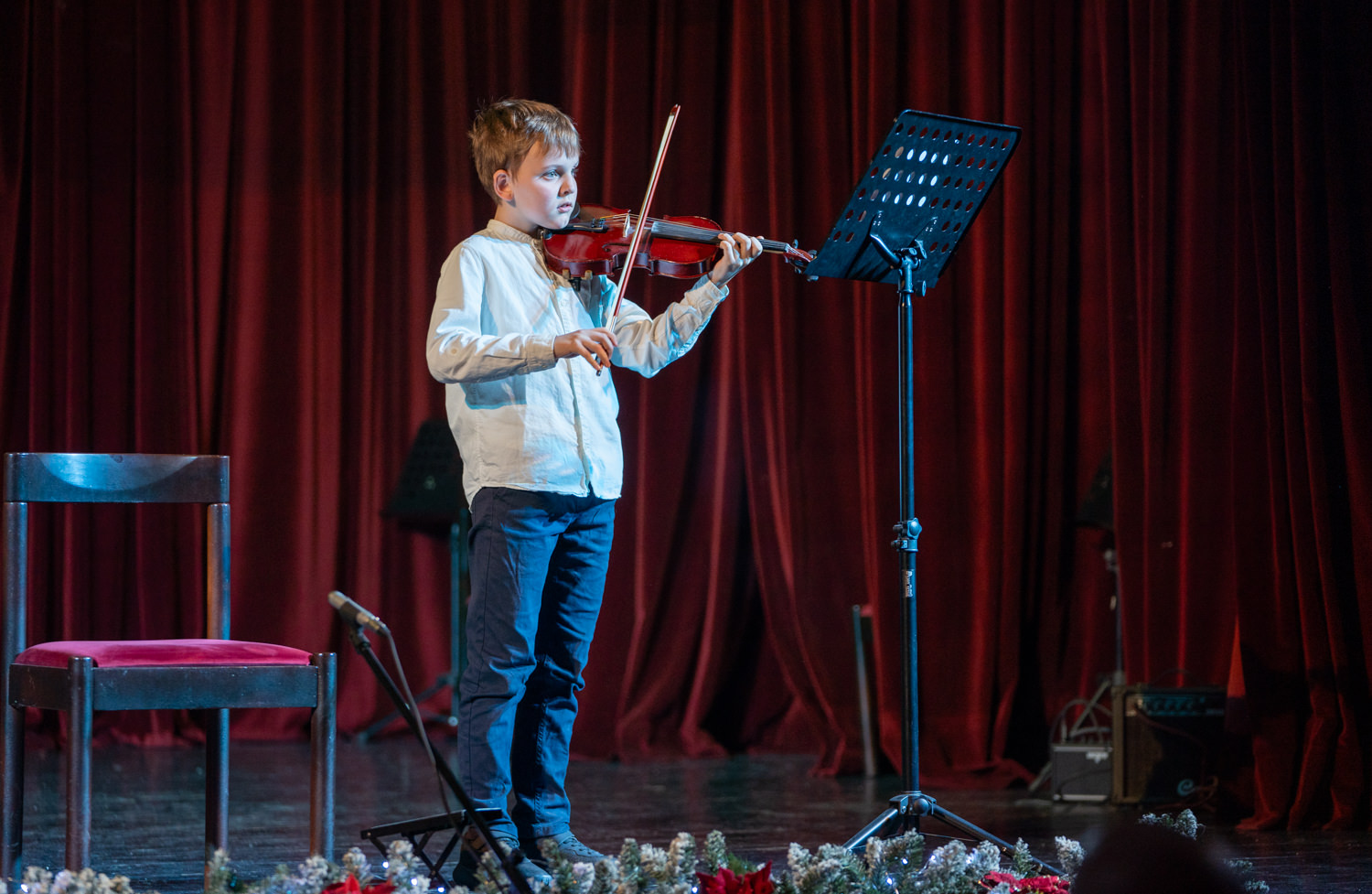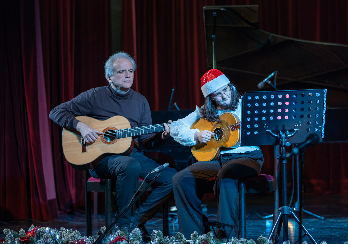 Koncert je otvorio komorni sastav gitara izvedbom tradicionalne božićne pjesme “Joy to the world” pod ravnanjem učitelja Dina Jelinića, čiji je skladan i emotivan nastup izmamio pljesak i oduševljenje prisutnih. Program se nastavio solo izvedbama djela klasične glazbe na klaviru, violini, gitari, tamburi i harmonici, a posebnu pozornost privukli su najmlađi polaznici koji su tradicijskim pjesmama na tamburi osvojili srca publike.