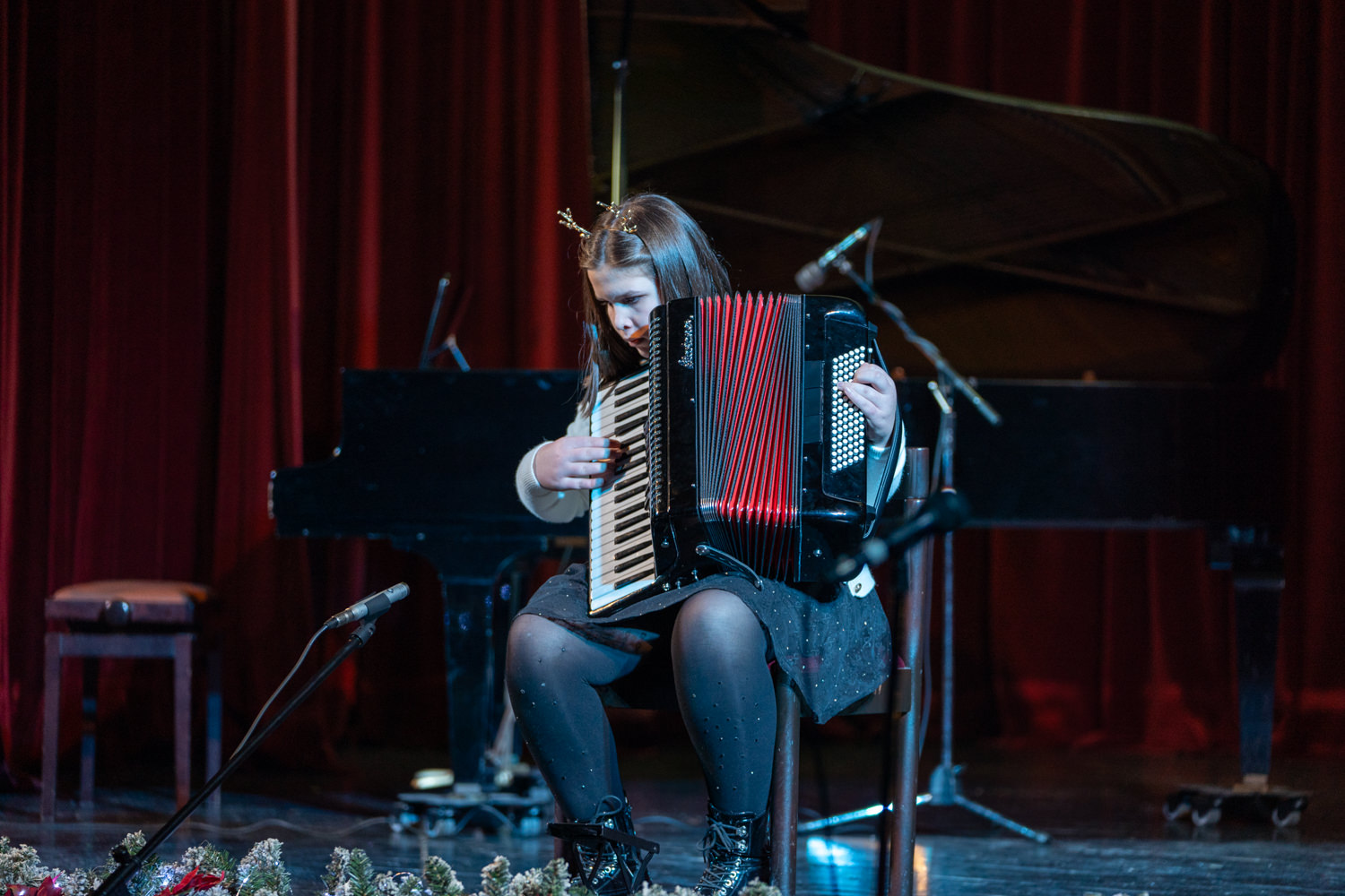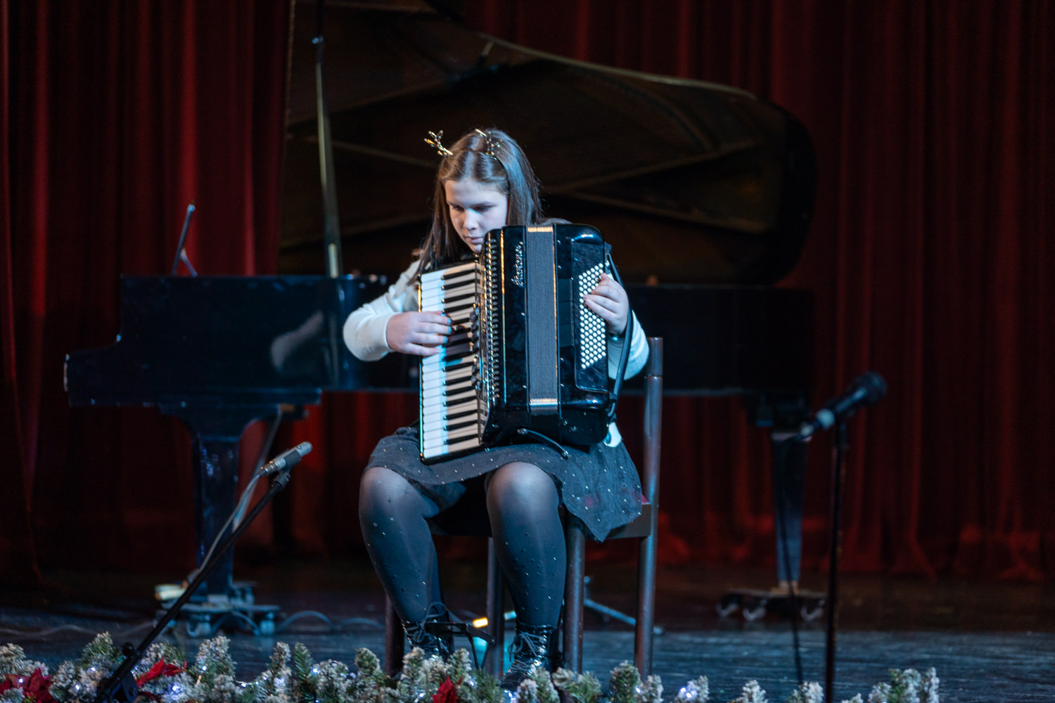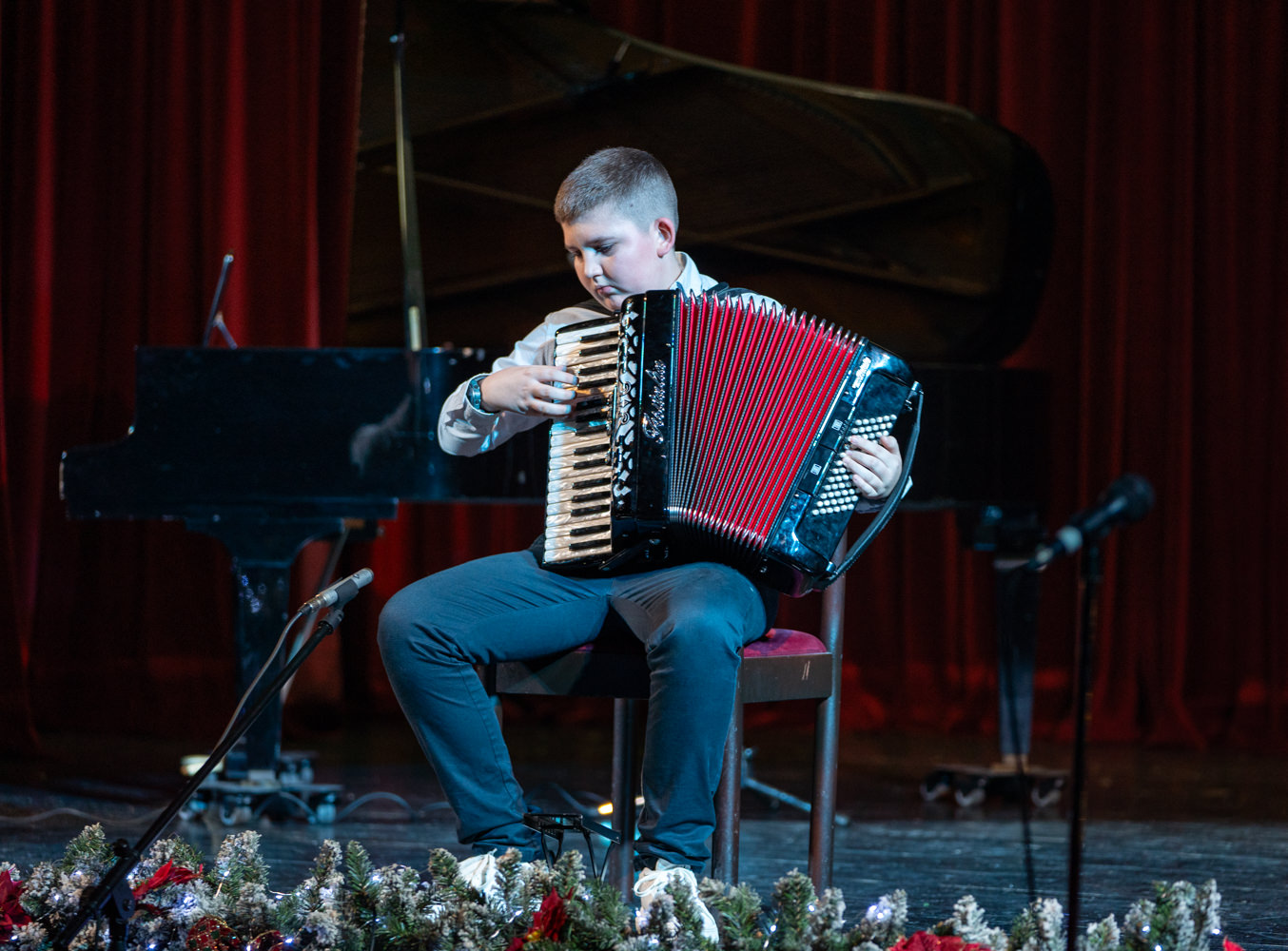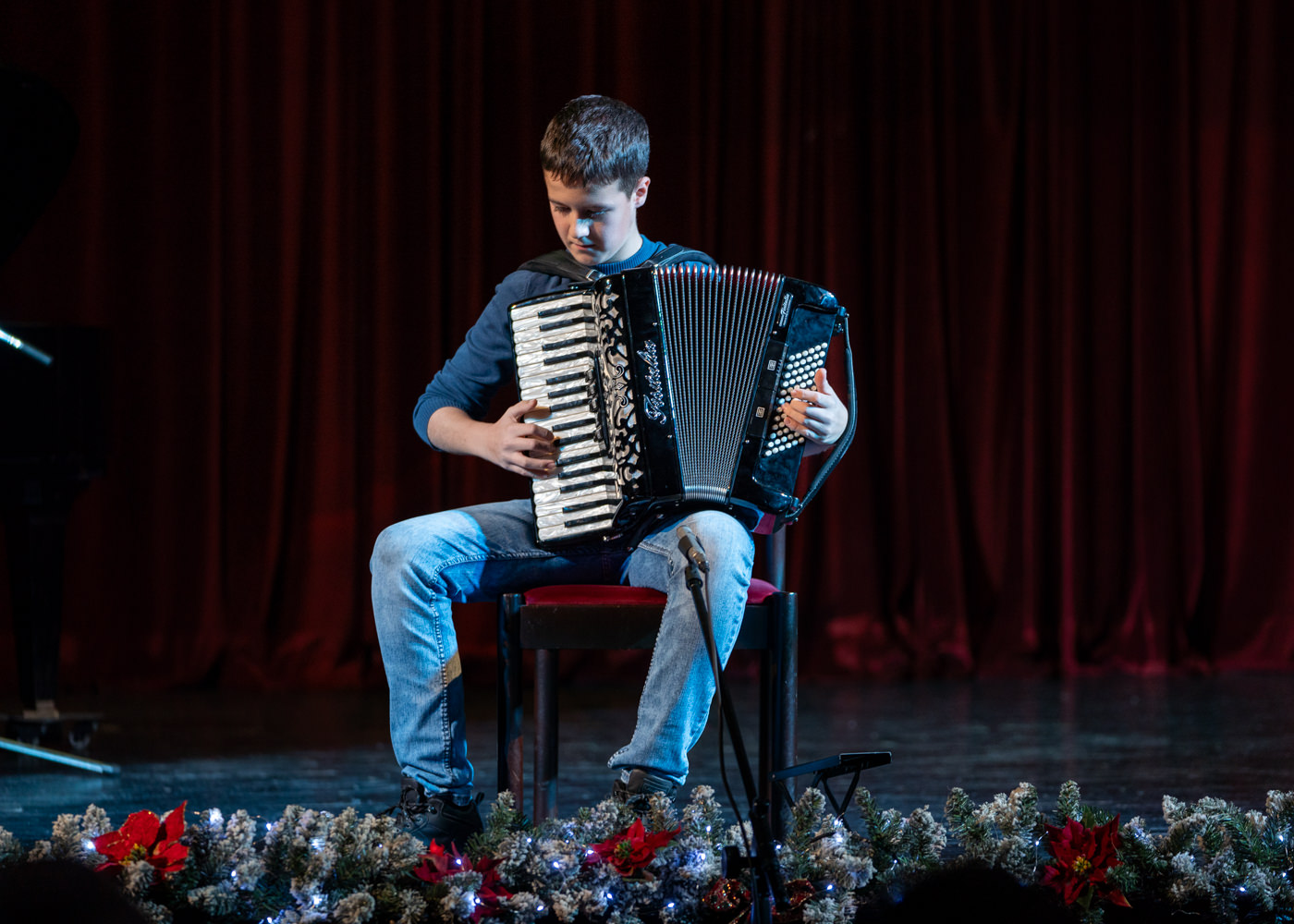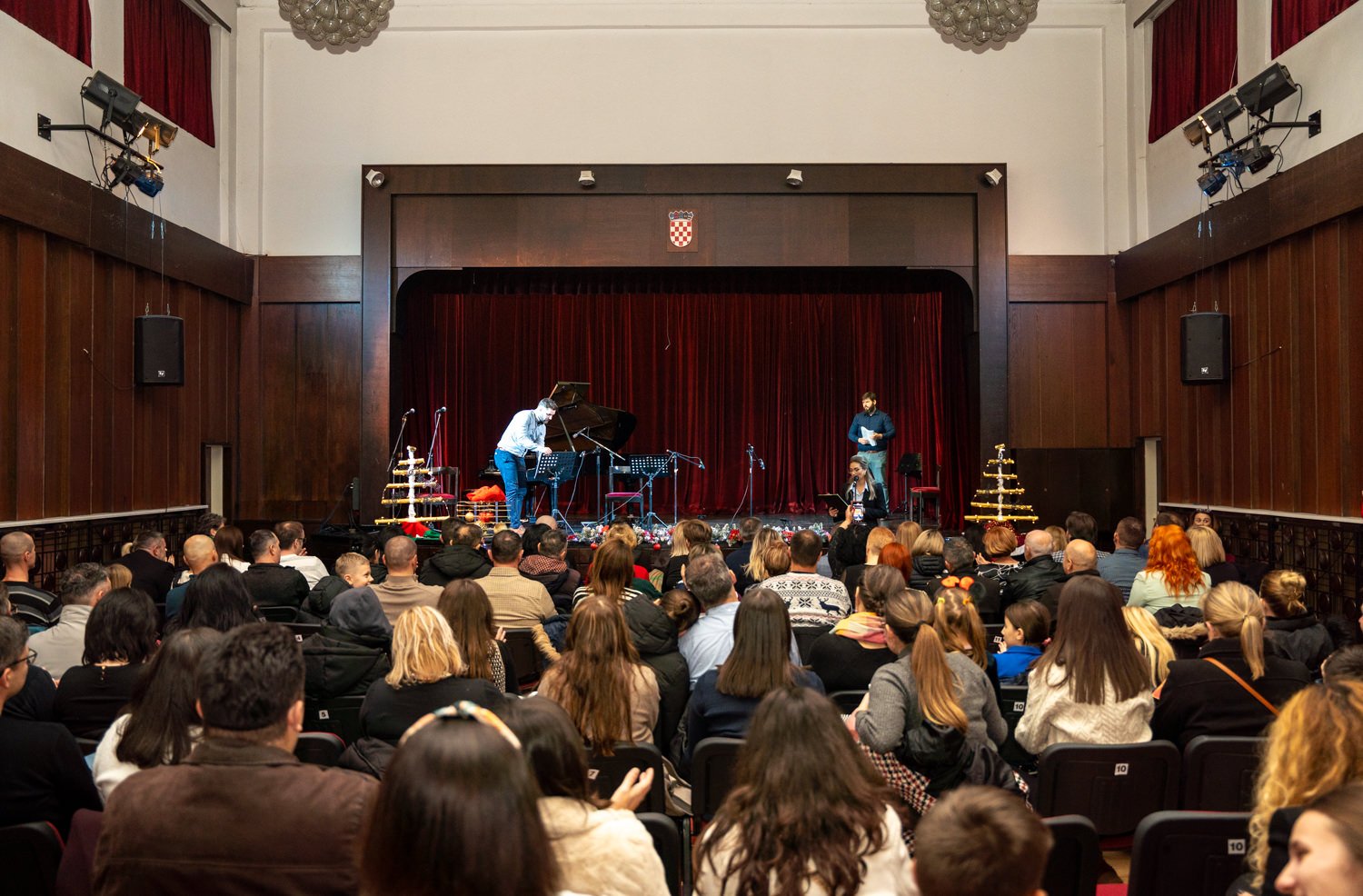 Večer su dodatno obogatili komorni sastav harmonika, pod vodstvom Jelene Čavkunović, izvedbama “We wish you a merry Christmas” i “Jingle bells”, te tamburaški sastav pod vodstvom Slavena Stilinovića, koji je raskoš zajedničkog muziciranja pokazao izvedbom Šostakovičevog Valcera br. 2. Školski zbor pod vodstvom Marijane Pavičić, uz pratnju učitelja na klaviru i gitarama, oduševio je publiku bezvremenskim božićnim klasicima “Oh, holly night”, “Jingle bell rock” i “Bijeli Božić”, a zvuk tambura dao je tradicionalnu notu poznatoj skladbi, izazvavši gromoglasan pljesak prisutnih.