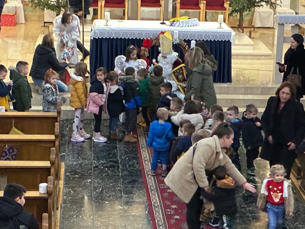Fra Draženko je u kratkom obraćanju najmlađima govorio o dobroti, zajedništvu i vrijednostima koje obilježavaju blagdan sv. Nikole, poželjevši svima blagoslovljen nastavak adventskog vremena.