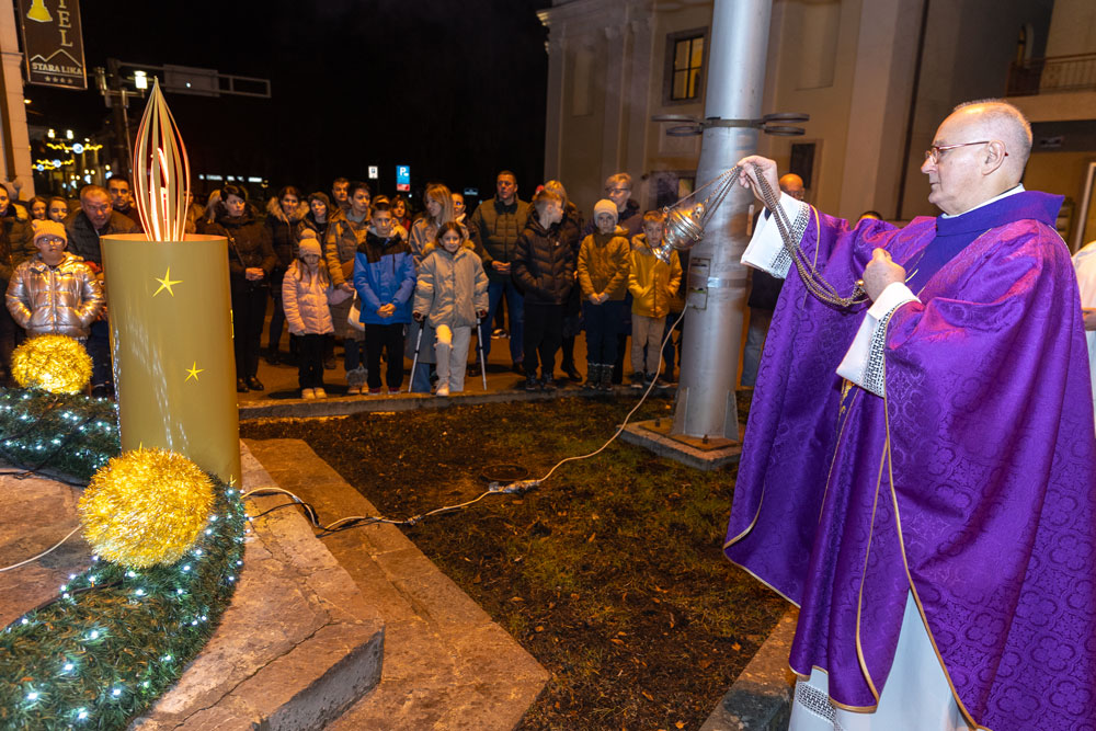 Večeras je u Gospiću, nakon svečane svete mise, upriličeno paljenje četvrte adventske svijeće. Skup vjernika, okupljenih ispred crkve, svjedočio je paljenju svijeće koja simbolizira mir u došašću. Riječi molitve i blagoslov predvodio je gospićki župnik, o. Ante Knežević. Svijeća Mira, kako se naziva četvrta svijeća na adventskom vijencu, označava nadu i očekivanje rođenja Isusa Krista te simbolizira težnju za mirom u srcima vjernika i u svijetu.