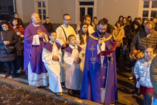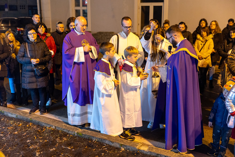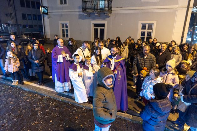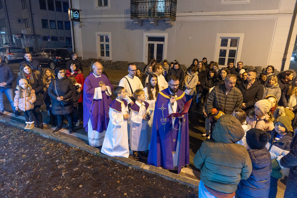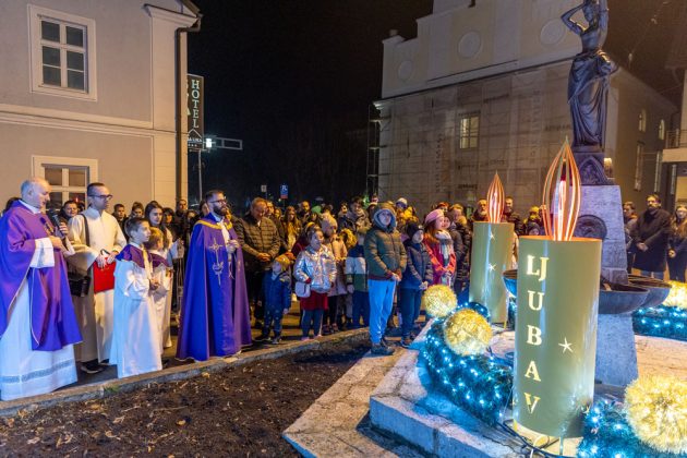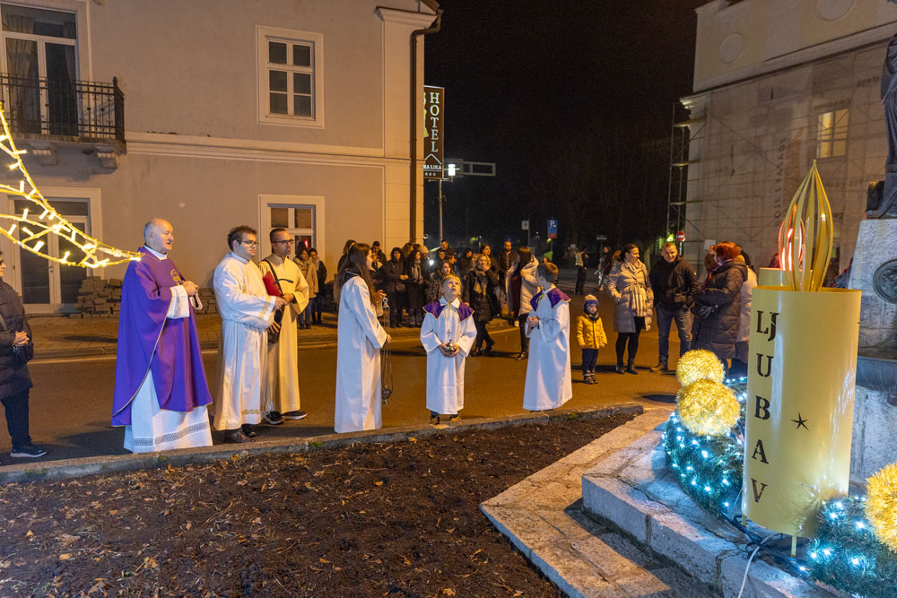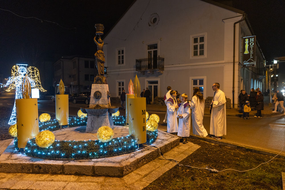 Nakon večernje mise održane u katedrali Navještenja blažene djevice Marije vjernici su se uz svećenstvo okupili kod Adventsnog vijenca postavljenog oko kipa Vodarice Marte u starom središtu grada.