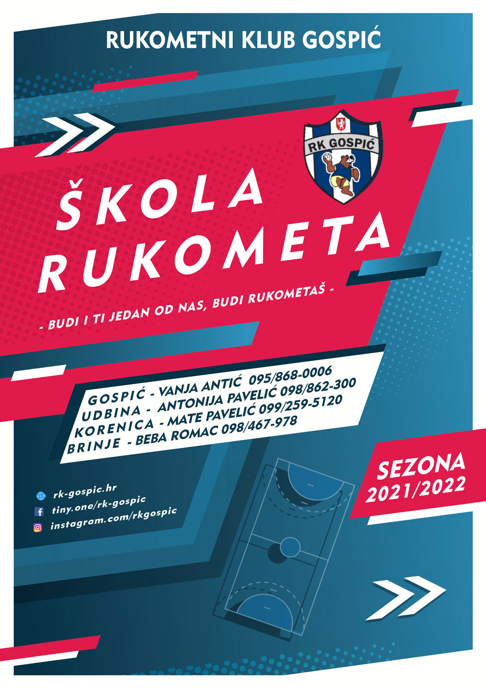 Rukometni klub “Gospić” vrši upise novih članova. U jednu od 17 grupa različitih uzrasta na području Gospića, Udbine, Korenice i Brinja o kojima brigu vodi 10 trenera upisati se mogu dječaci i djevojčice vrtićke dobi, ali i učenici od 1. do 8. razreda.
