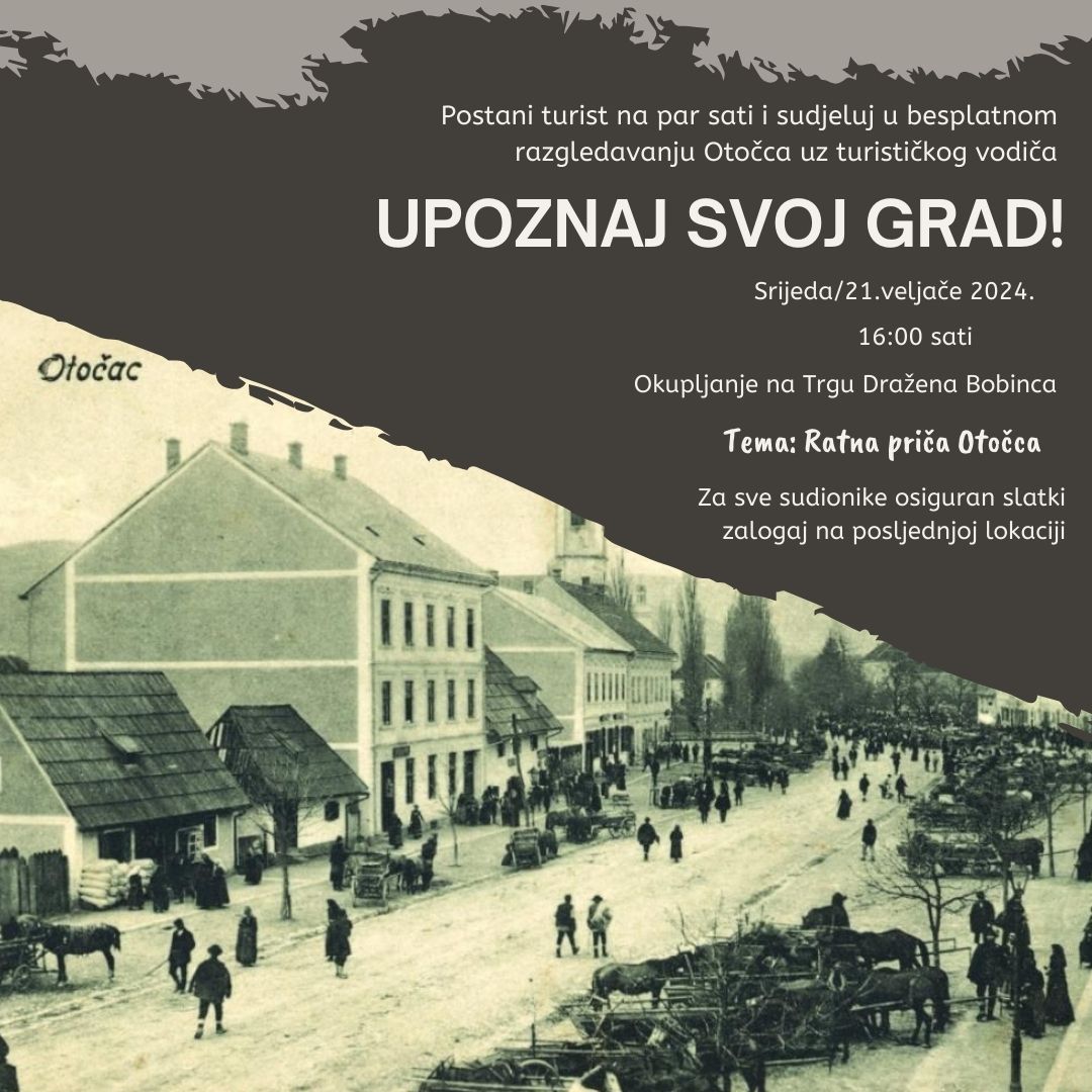 21. veljače se od 1990. obilježava kao Međunarodni dan turističkih vodiča. Shodno tome Turistička zajednica Grada Otočca poziva sve građane da nakratko postanu turisti u svom gradu i sudjeluju u besplatnom dvosatnom razgledavanju Otočca uz turističkog vodiča. Razgledavanje će voditi Ruža Orešković koja će nam ispričati ratnu priču Otočca što je ujedno i ovogodišnja tema razgledavanja te će nas posebno upoznati sa zgradama i lokacijama u centru grada koje su bile značajne za vrijeme rata.