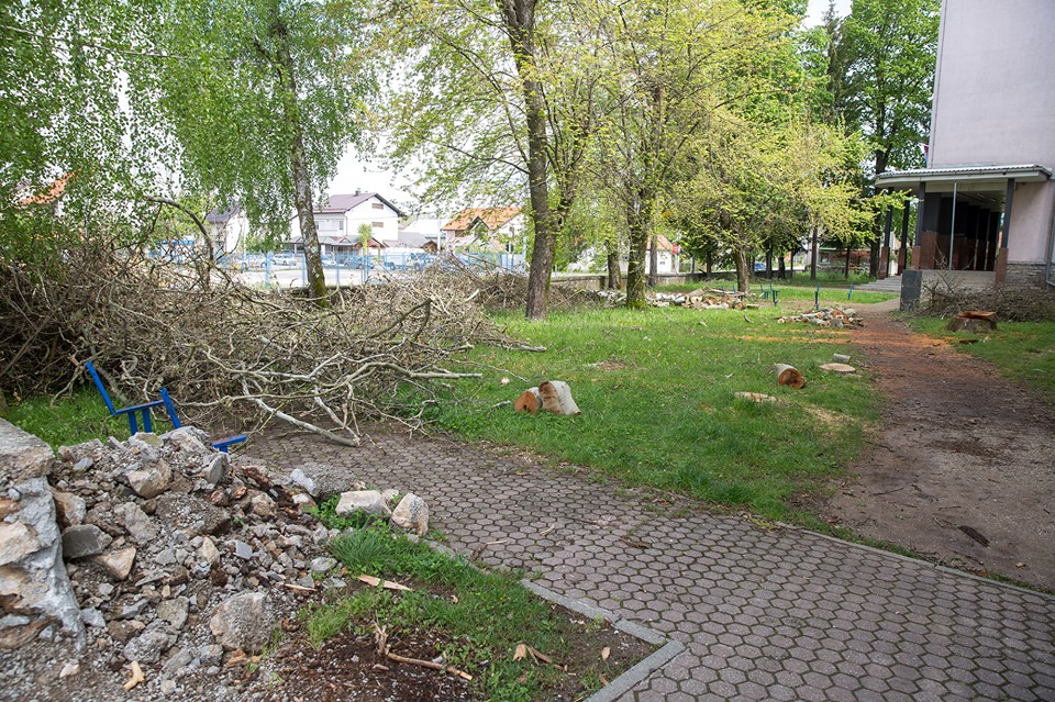 Već nekoliko dana vrijedni djelatnici Komunalca vrijedno rade na okolištu zgrade Gimnazije i Strukovne škole u Gospiću. Zbog oštećenosti nekolicine starih stabala i opasnosti po sigurnost ljudi ta su stabla uklonjena. Sanira se i dio zida, uređuju šetnice, obrezuju grmovi i drveće. Tako će ovo staro zdanje za koji dan bljesnuti u novom sjaju, kao pokazatelj kako nam valja skrbiti o vrijednostima koje nadilaze kratki ljudski vijek.