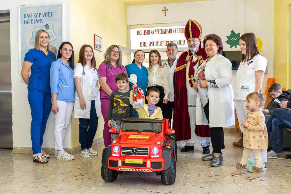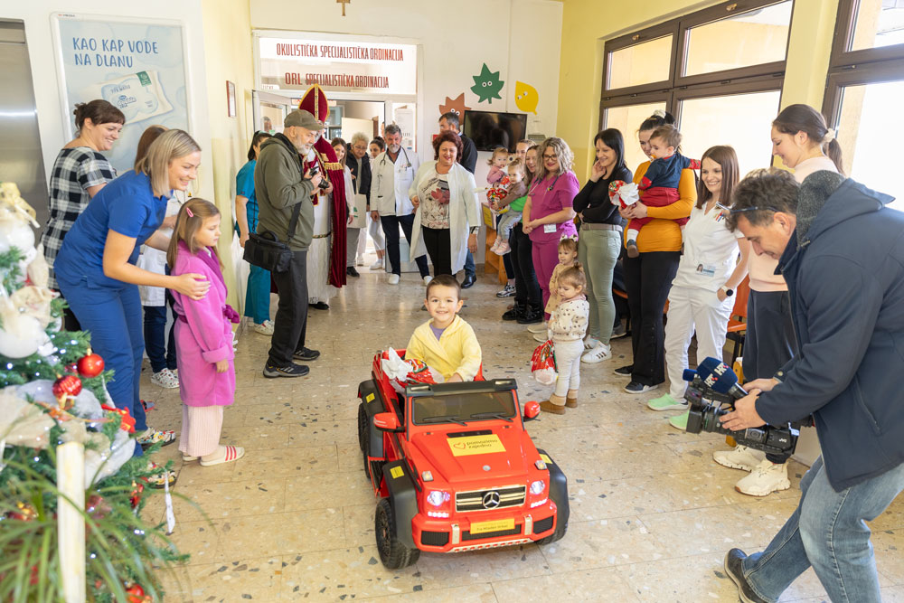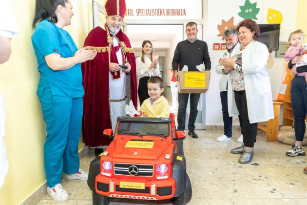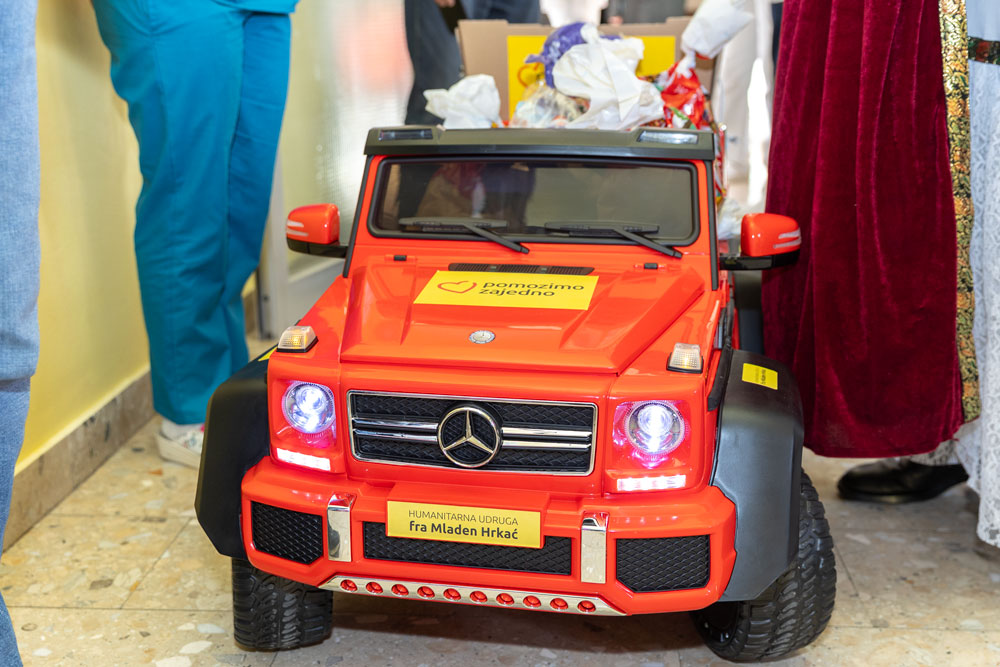 Danas ispred humanitarne udruge „fra Mladen Hrkać“, predsjednik udruge Ivan Soldo (ujedno i sveti Nikola) i donatorica udruge Marija Miličević iz Zadra uručili su Odjelu pedijatrije-Opće bolnice Gospić električnog autića i prigodne darove za djecu.