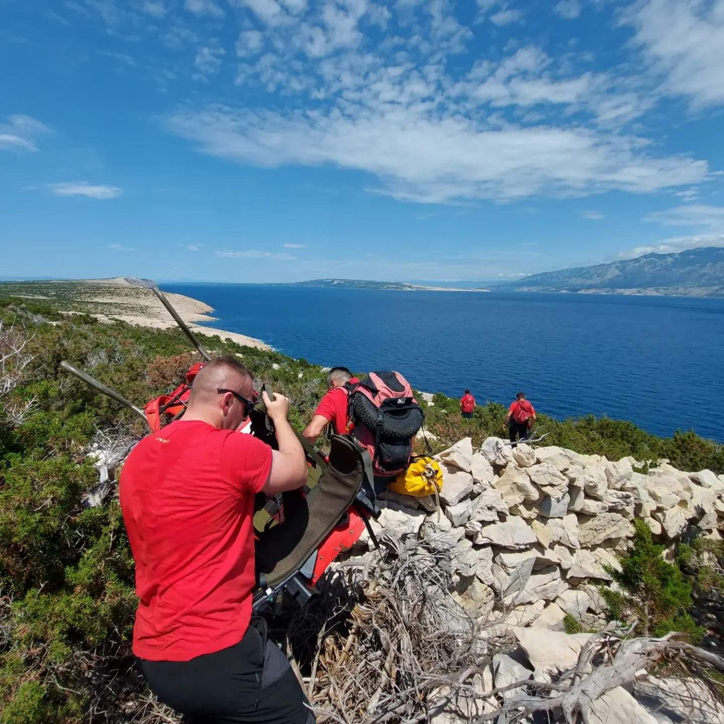 Pored šest pripadnika HGSS Stanice Gospić koji su sudjelovali u potrazi, na terenu su bili prisutni i vatrogasci iz Novalje te djelatnici MUP-a, koji su zajedničkim snagama uspjeli pronaći i pružiti pomoć unesrećenom putniku.