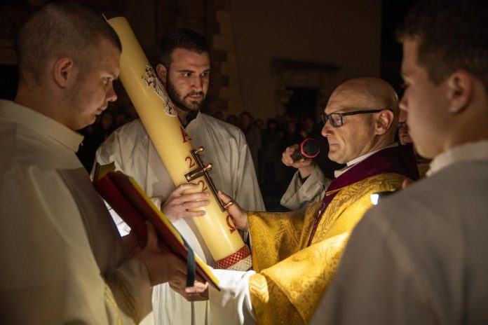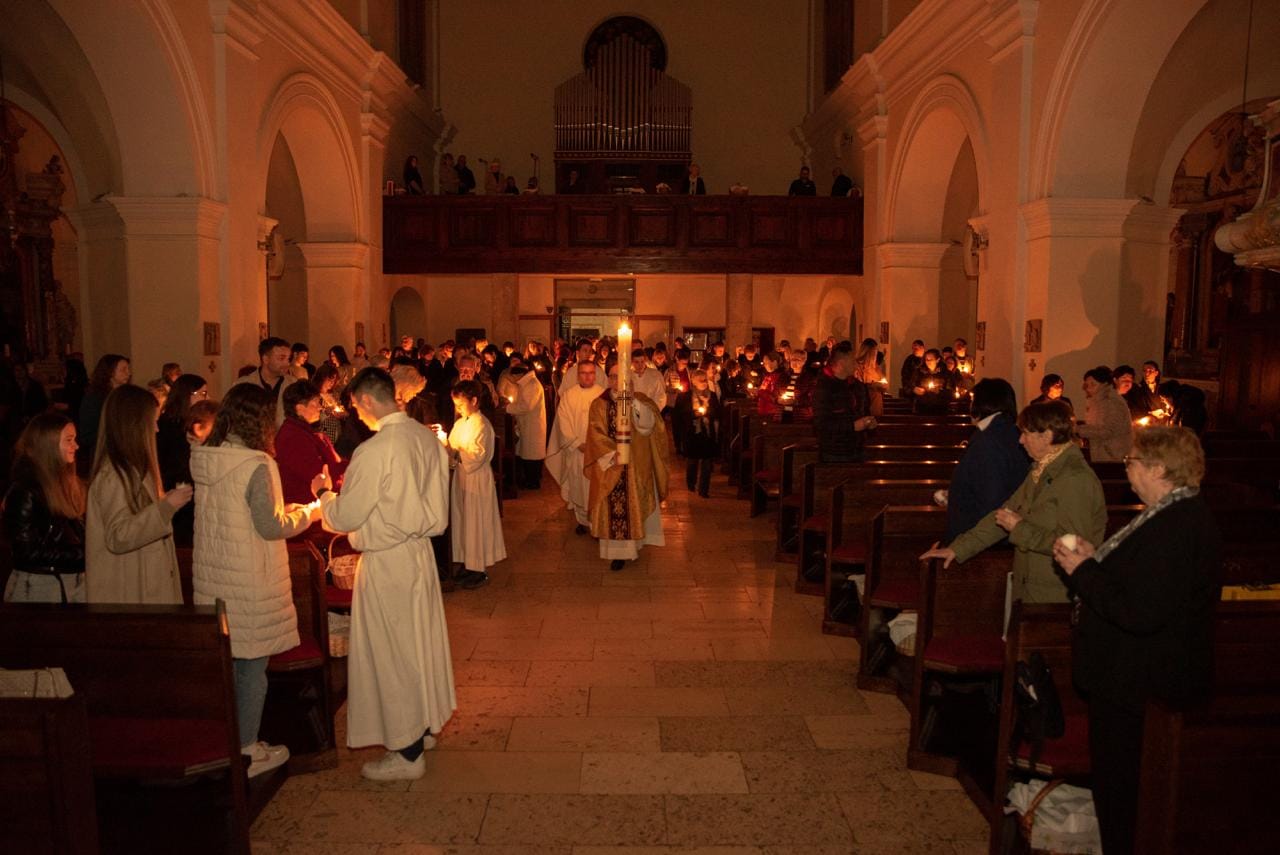U vazmenoj propovijedi mons. Pavlić je istaknuo tri osobe uskrsnog jutra od kojih se možemo učiti vjeri: Božja „šutnja“ u našem životu slična je praznini groba pred kojom se nalazi Marija Magdalena koja u beznadnoj životnoj situaciji pokušava učiniti ono što se ipak može učiniti. Od Petra se možemo učiti šutnji i strpljivosti pred situacijama života i vjere u kojima razum ostaje nijem. Od „ljubljenog učenika“ možemo se učiti slušati i gledati srcem. On koji je na posljednjoj večeri čuo otkucaje Učiteljeva srca, u praznom grobu spoznaje da to Srce nije prestalo kucati. Neka nam ova tri Isusova učenika izmole dar uskrsne vjere koja će nam pomoći suočiti se s Božjom „šutnjom“, otkotrljati kamenje sumnje, straha i nemira, te naći odgovore tamo gdje razum ostaje nijem.