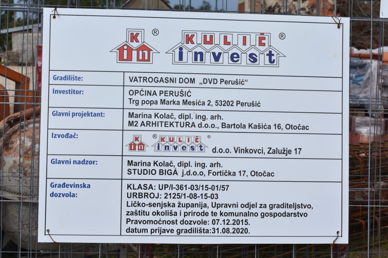 Naša ekipa je prije svega desetak dana obišla gradilište novog Vatrogasnog doma u Perušiću. Očito je kako ekipe poduzeća „Kulić-Invest“ iz Vinkovaca koriste svaki dan bez oborina da bi se radila buduća zgrada. Tako smo i danas naišli na radnike koji rade po potrebi i vikendima jer nepredvidiva lička jesen nikoga ne štedi. Loša vremenska prognoza već za sutra najavljuje novi vlažni val koji će zaustaviti sva gradilišta u Lici.