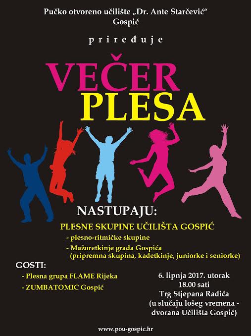 Zbog nepovoljnih vremenskih uvjeta, manifestacija Večer plesa koja se trebala održati na trgu Stjepana Radića premiještana je u dvoranu POU Gospić.