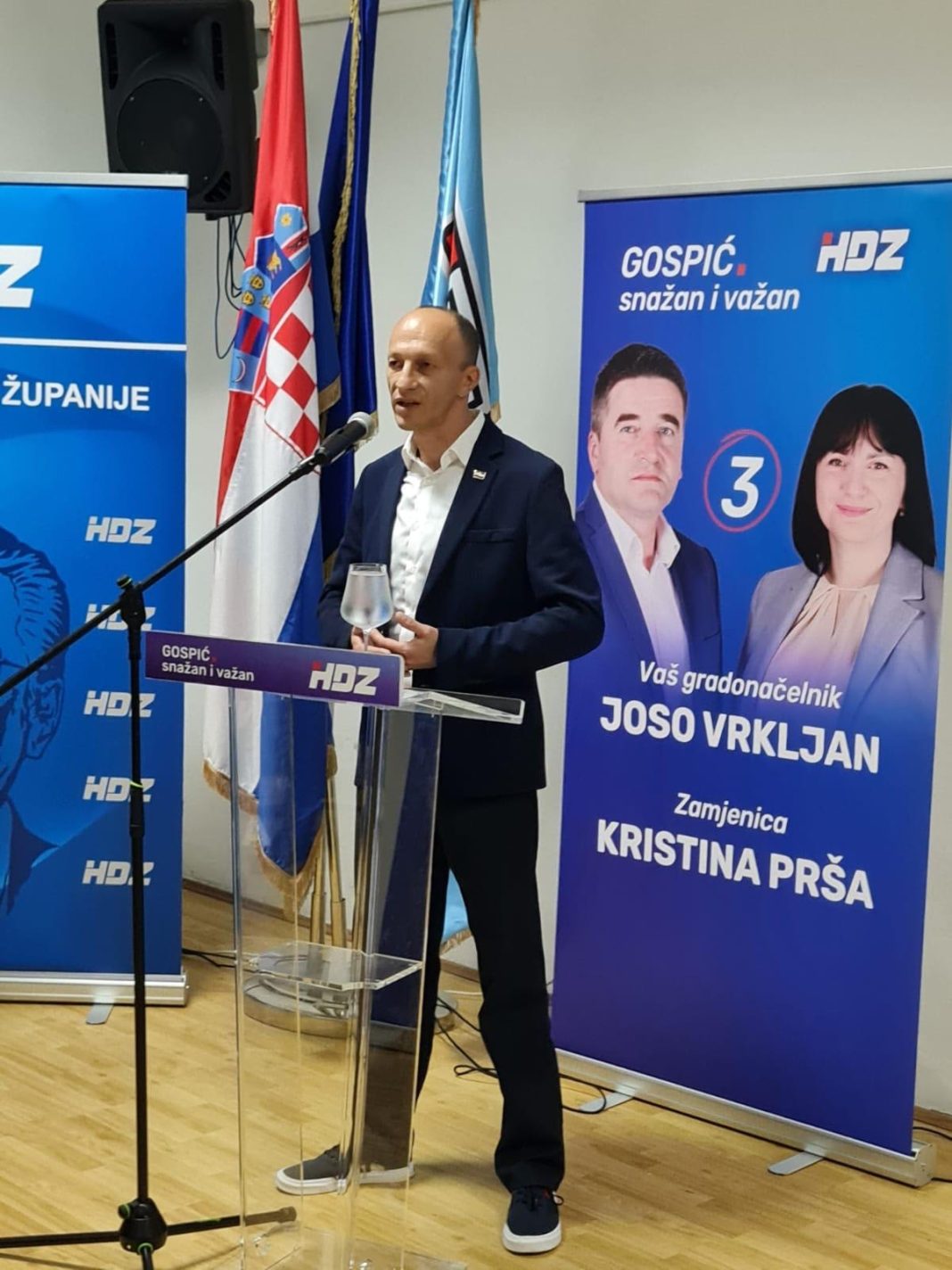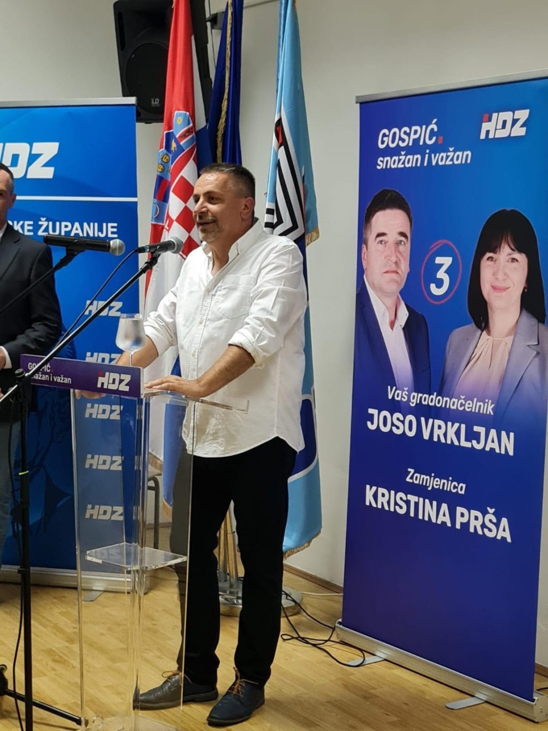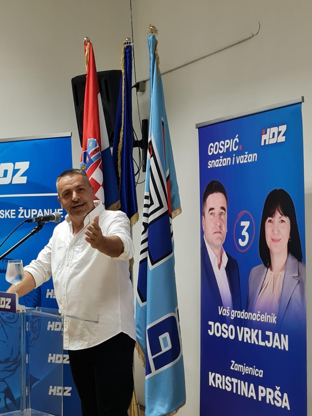 Predsjednik Županijske organizacije HDZ-a Ličko-senjske županije i župan ličko-senjski Ernest Petry pozdravio je sve nazočne i istaknuo važnost ovih izbora za građane Gospića jer jedino HDZ-ov kandidat Joso Vrkljan i zamjenica Kristina Prša mogu u sljedećih 10 mjeseci napraviti značajne pomake na svim poljima u gradu Gospiću.