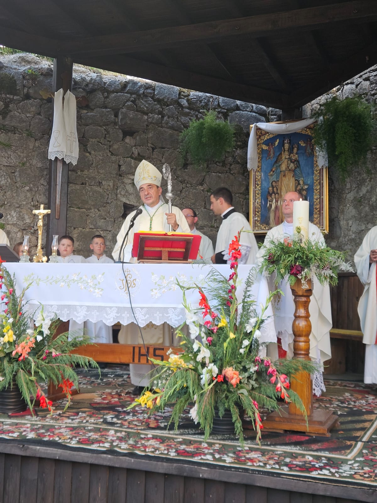 U propovijedi je biskup Medo istaknuo kako Uznesenje Marije pokazuje pobjedu života nad smrću i Božju vjernost prema onima koji mu se povjeravaju. Podsjetio je vjernike da Marija svojim životom pokazuje put vjere, poniznosti i služenja, te je simbol nade i utjehe za svakoga. “Zašto Marija veliča Gospodina? Zato što je pogledao na poniznost svoje službenice. Marija ne veliča sebe. Ona ne zaboravlja svoju malenost. Ona zna da sve dolazi od Boga. Kakav sklad, kakva mudrost i krepost u toj mladoj ženi Izraela! I s pravom možemo reći: Bog je izabrao izraelski narod, jer je iz njega trebala doći Marija – jedino stvorenje dostojno da u svojoj utrobi primi Sina Božjega. Poniznost njezina srca postaje prva kolijevka u kojoj se rađa Bog – kolijevka koja najavljuje kolijevku Betlehema, rekao je biskup.