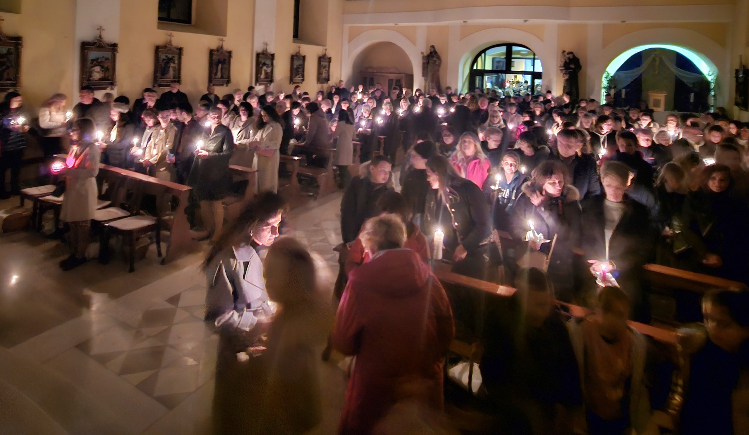 Draga braćo i sestre, „ovo je noć kad je Krist raskinuo okove smrti i kao pobjednik od mrtvih ustao. O, divne li pažnje Božje prema nama. O, neshvatljive li ljubavi Očeve: da roba otkupiš, Sina si predao“ pjevamo u Hvalospjevu uskrsnoj svijeći. „O, zaista blažene noći, koja jedina zavrijedi znati vrijeme i čas, kad je Krist od mrtvih ustao. Ova uskrsna sveta noć ništi grijehe, pere krivice, i nevinost vraća palima, a radost tužnima“ (HUS). Braćo i sestre, koliki su u ovoj svetoj noći tužni i osamljeni? Koliki su ranjeni različitim životnim situacijama? Kolike majke traže svoju djecu na ratištima diljem svijeta? Kolika braća i sestre ovu svetu noć iščekuju u strahu za živote jer zlo je zaludjelo pojedince i ratovi haraju i razaraju njihove domove i živote. Koliki su večeras osamljeni, posebno stari i bolesni, koje nema tko pohoditi i pružiti toplinu riječi i znak ljubavi i pažnje. Kolika djeca i ove godine u različitim domovima za djecu čekaju tko će im pružiti toplinu i ljepotu obitelji. A mi? Jesmo li svjesni koliko imamo i koliko smo nezahvalni za sve ono što imamo? Ali Isus je upravo zbog takvih došao. Isus je svojim uskrsnućem uništio sve grijehe, oprao svaku krivicu, probudio radost i nadu u svakom čovjeku, darovao vječni život. „O, zaista blažena noć, u kojoj se nebesko sa zemaljskim, božansko s ljudskim povezuje“.